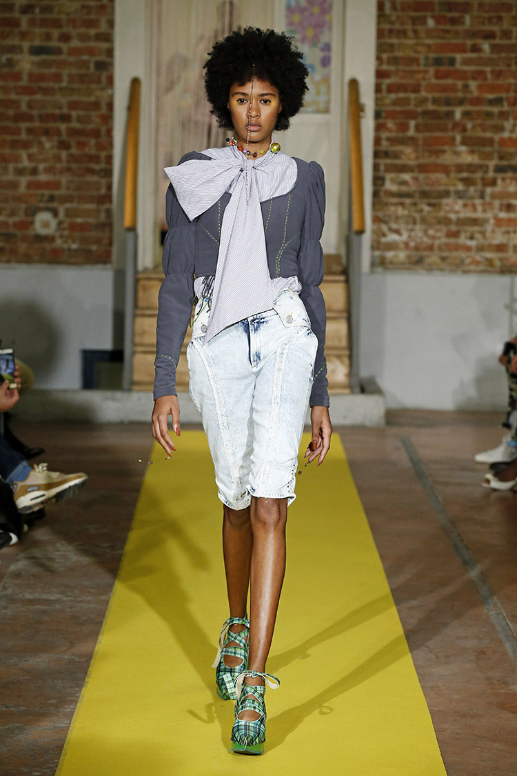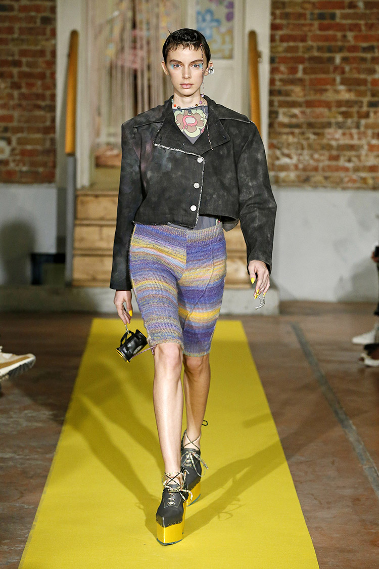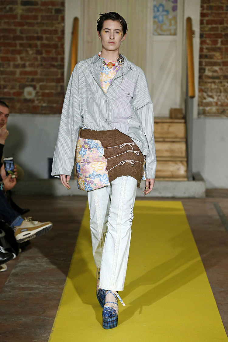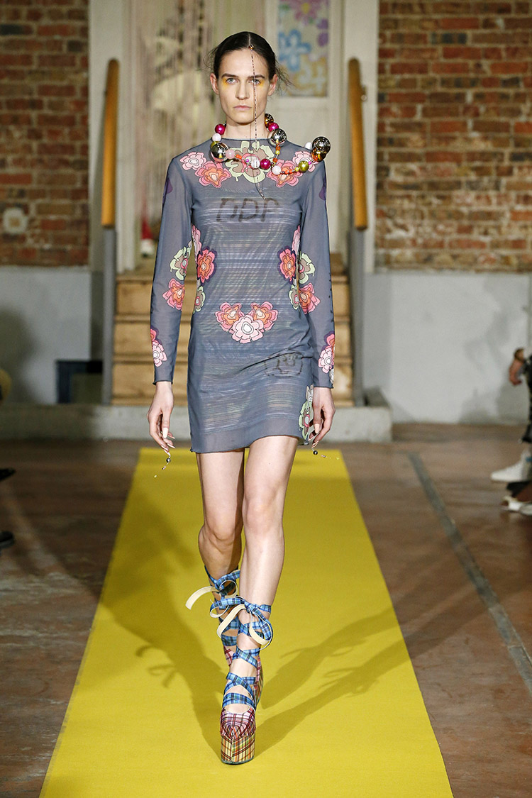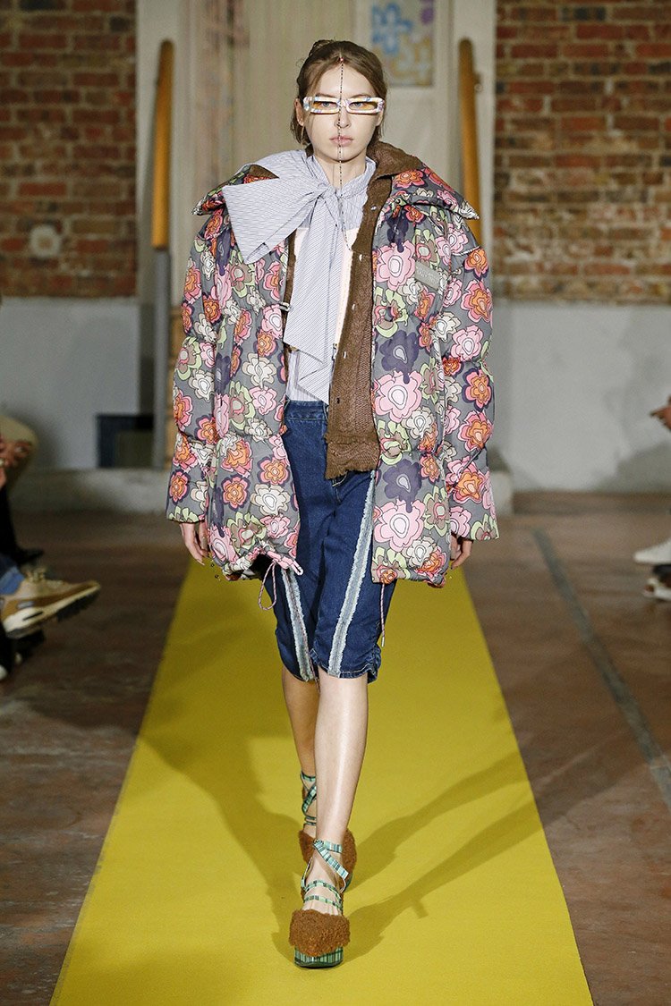 La restructuration récente de la marque DDP et la vision futuriste de Francisco Terra, créateur de Neith Nyer, semblent s’accorder à la perfection. Cette association donne naissance à un défilé avant-gardiste où les tendances de demain sont à l’honneur. Les silhouettes se parent de bobs mixés à des doudounes aux motifs fleuris très 60’s ou à des bijoux de cheveux rehaussés par des hauts en flanelle. Une collection éclectique qui ne laisse rien au hasard avec des références subtiles aux archives de DDP.