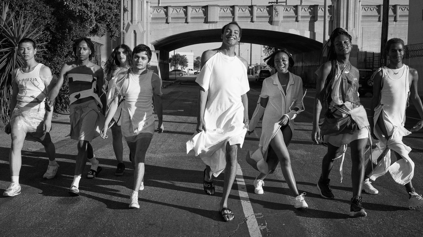 À Los Angeles, Pierre est à la tête d’une marque, No Sesso, qui s’articule autour de la même philosophie inclusive et fait main. Agrémentées de matières recyclées, les pièces du label sont cousues et brodées à la main. A l’image de sa classe, la mode de Pierre est aussi affirmée qu’accueillante : ses vêtements sont pensés pour aller à des personnes de différentes tailles tandis que les campagnes et lookbooks de la marque mettent en scène des personnes de couleur rejetant la lecture binaire du genre.