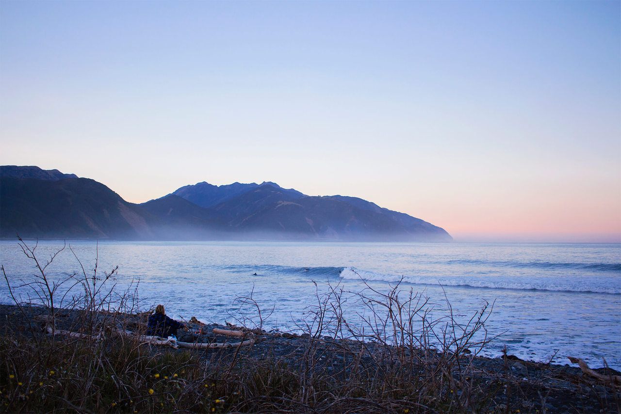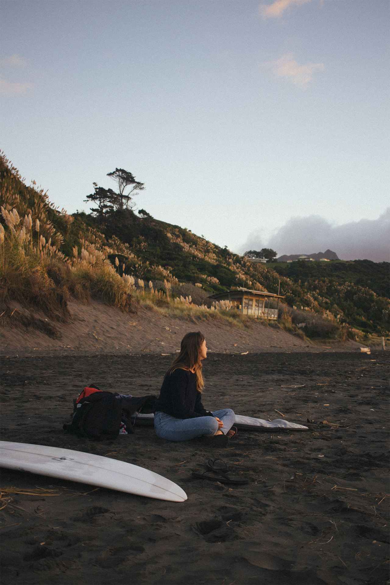 Nos journées étaient rythmées par nos boulots en freelance (un peu), des randos, des déjeuners à base de toasts à l’avocat et (beaucoup, beaucoup) de surf. En plus de ses vagues parfaites, Raglan est entourée de plages sauvages, et d’une forêt tropicale mise en valeur par la montagne Karioi qui surplombe la Mer de Tasman ; des hectares de terrain de jeu en plein air, à quelques minutes seulement en voiture.