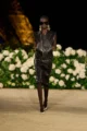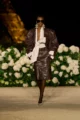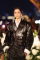 Au fil du défilé, une même femme se métamorphose : dominatrice cuir, muse légère en trench nylon, héroïne romantique en robe XXL. Vaccarello brouille les pistes et rappelle que la femme Saint Laurent n’est jamais docile. Elle incarne à la fois le fantasme, l’insolence et l’inattendu.