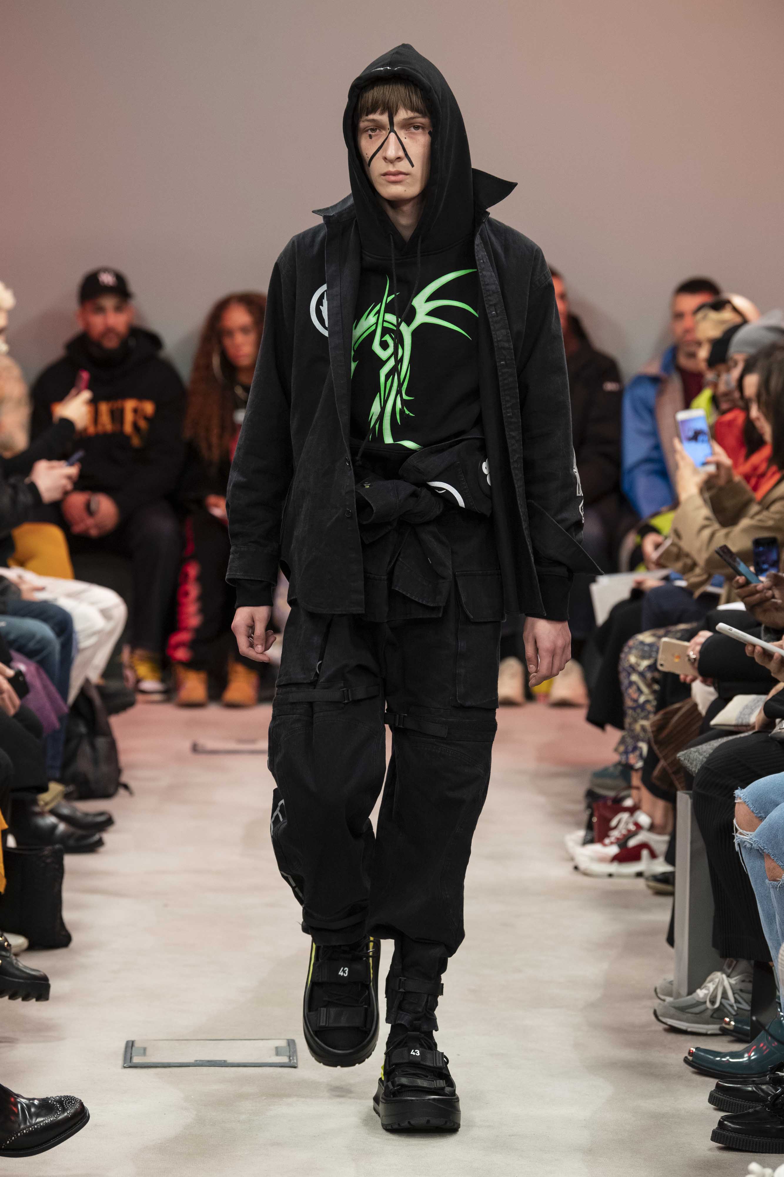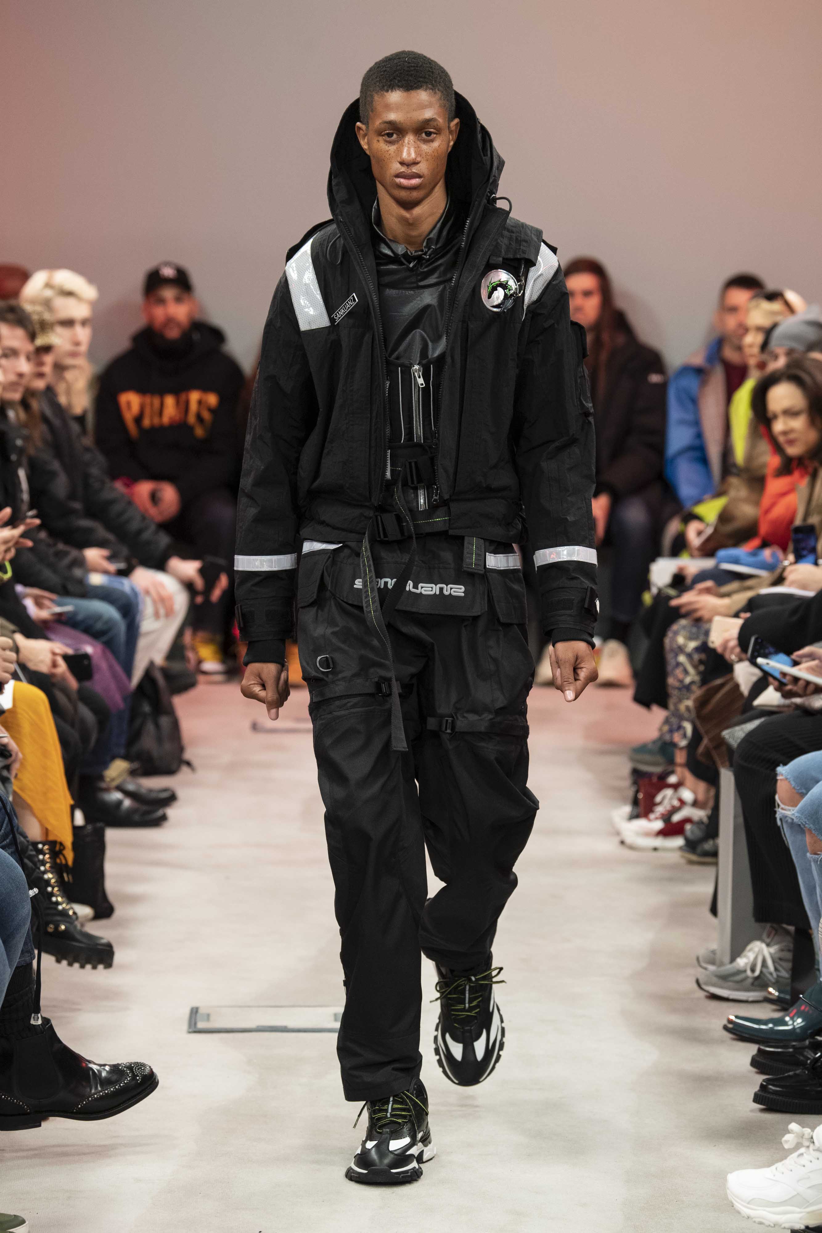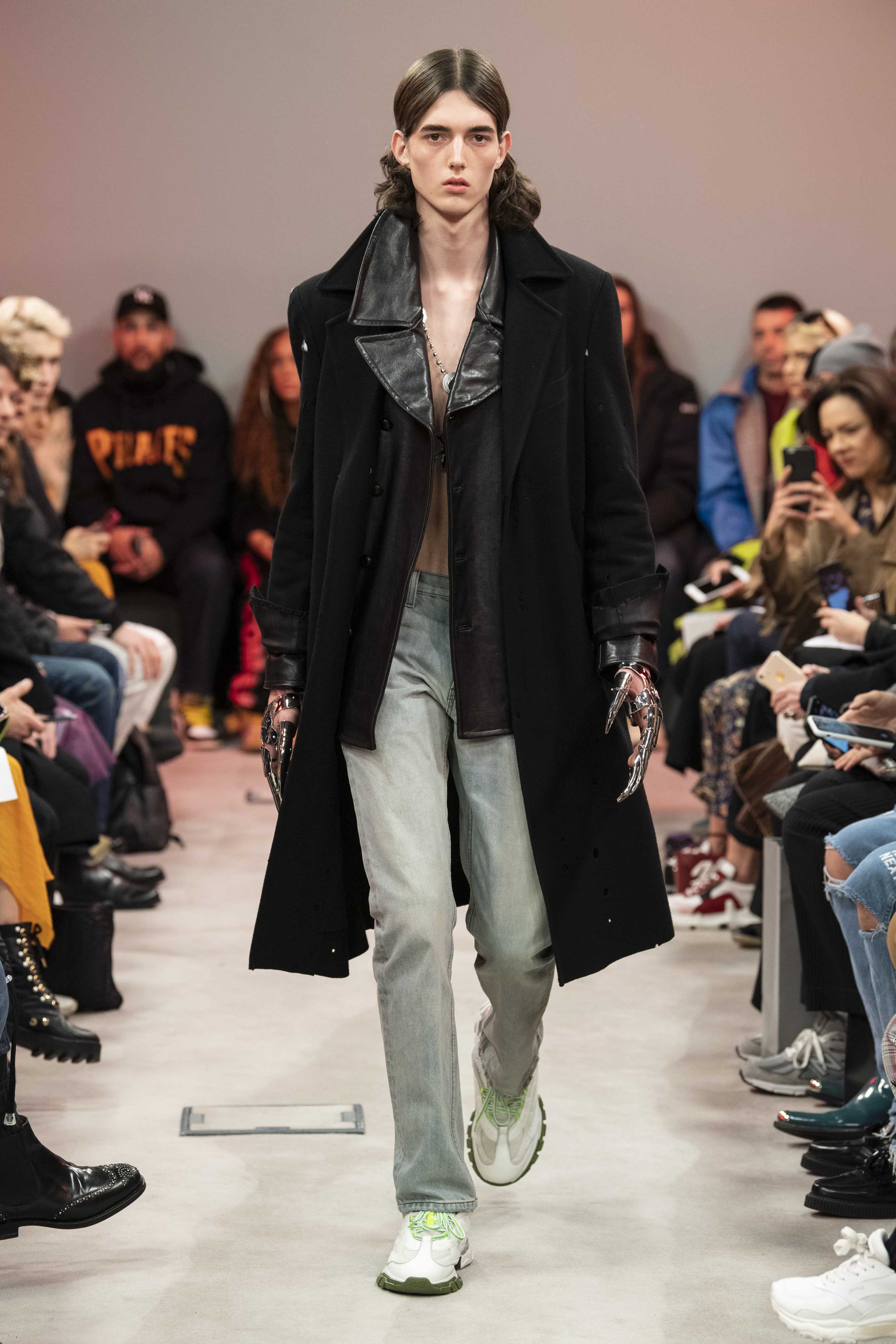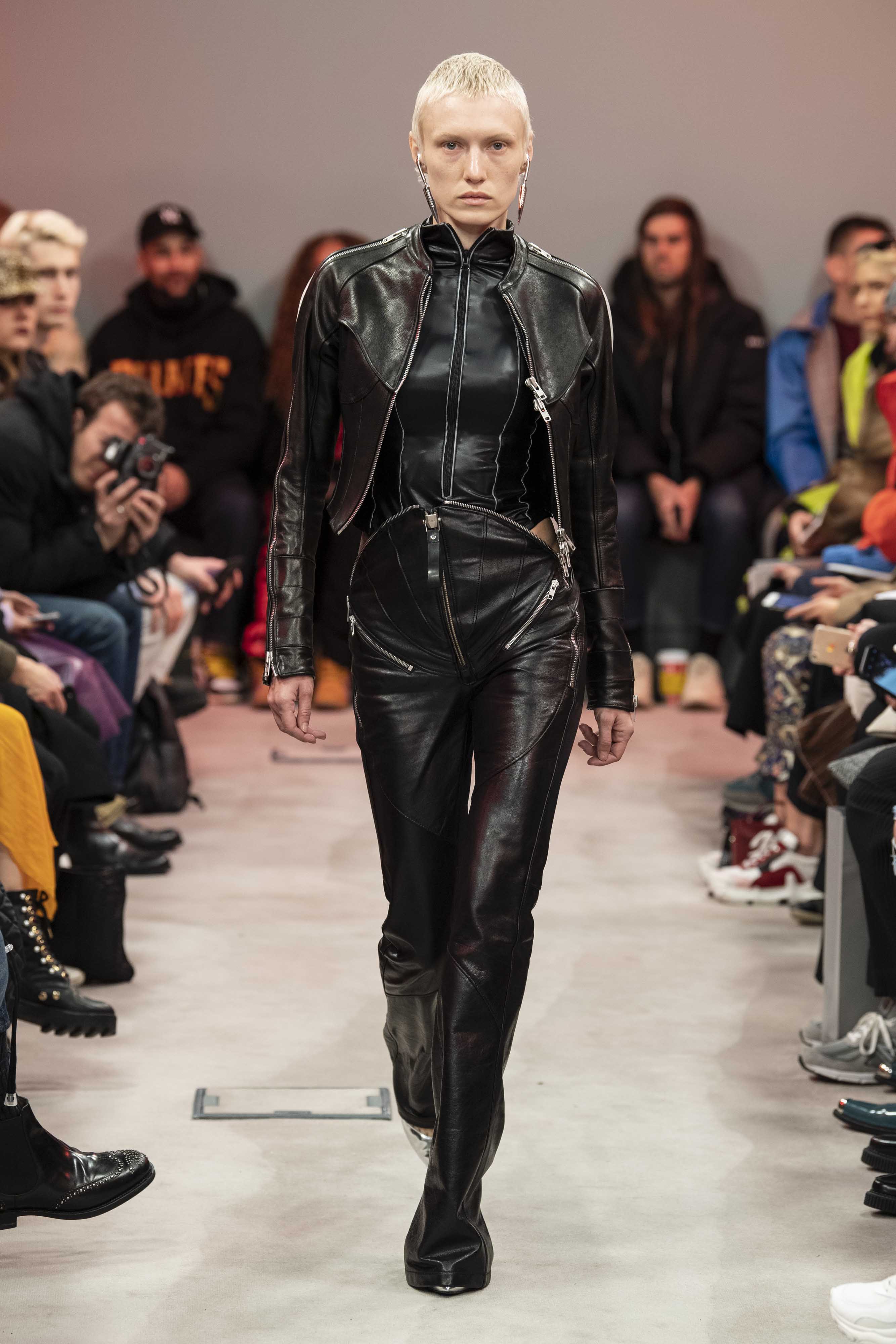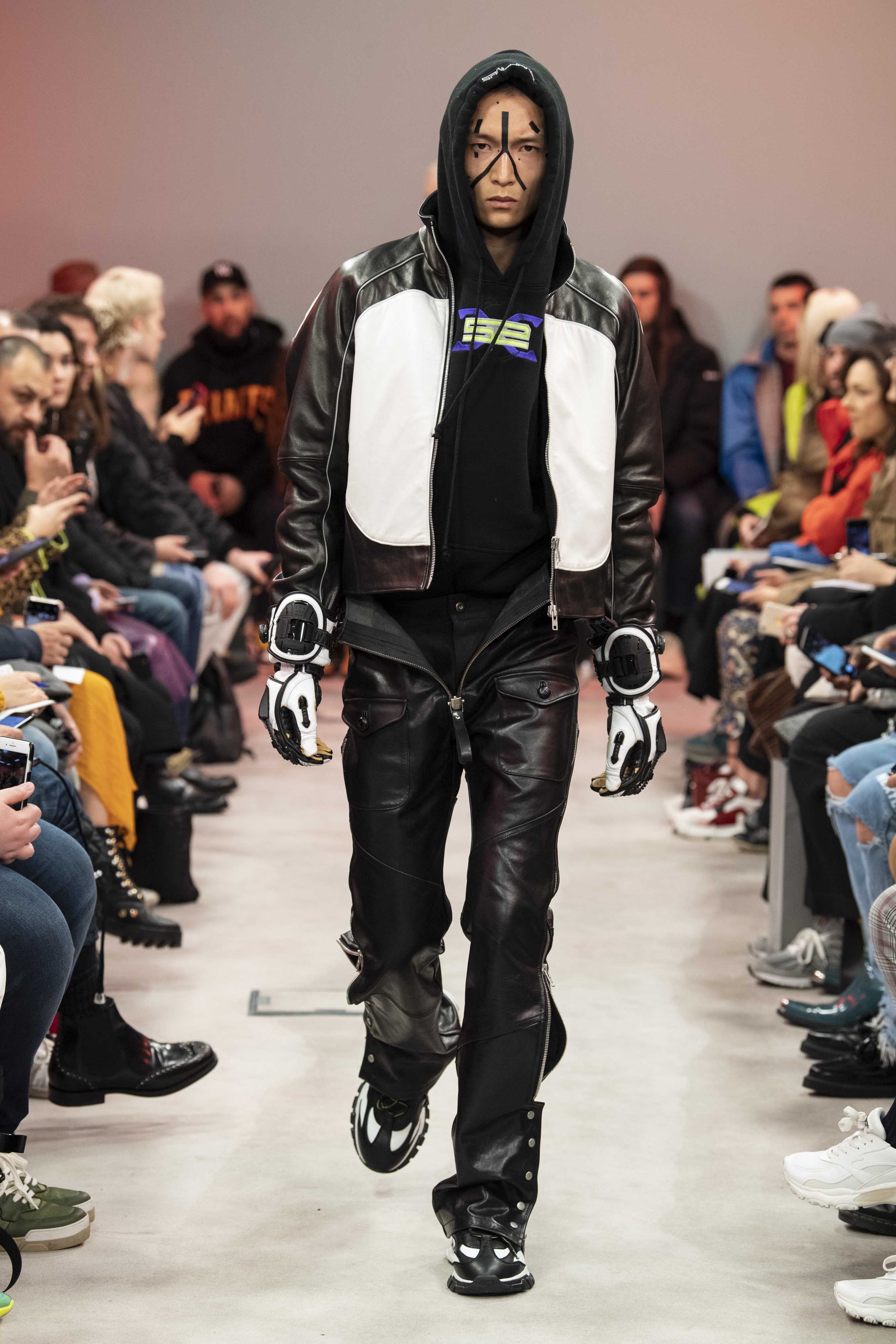 Avec cette collection, le créateur poursuit ses réflexions sur notre monde moderne. Il développe les notions de destruction et de protection, d’attaque et de défense, tout en déconstruisant et reconstruisant. Le cuir noir et le latex sont ici à l’honneur, avec de nombreuses références au monde marin tels que des combinaisons de plongées, des baleines tueuses et des uniformes de navigateurs.