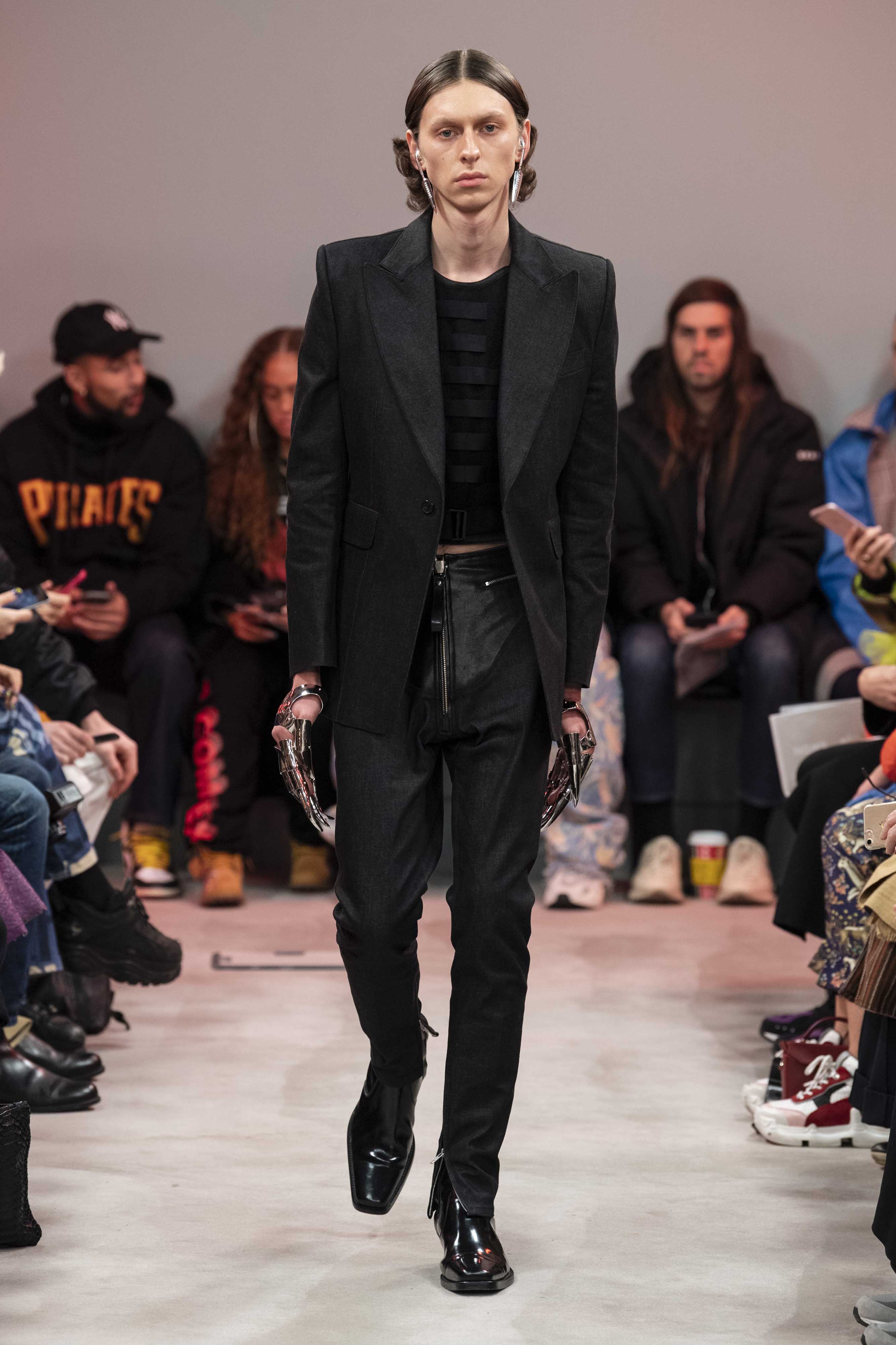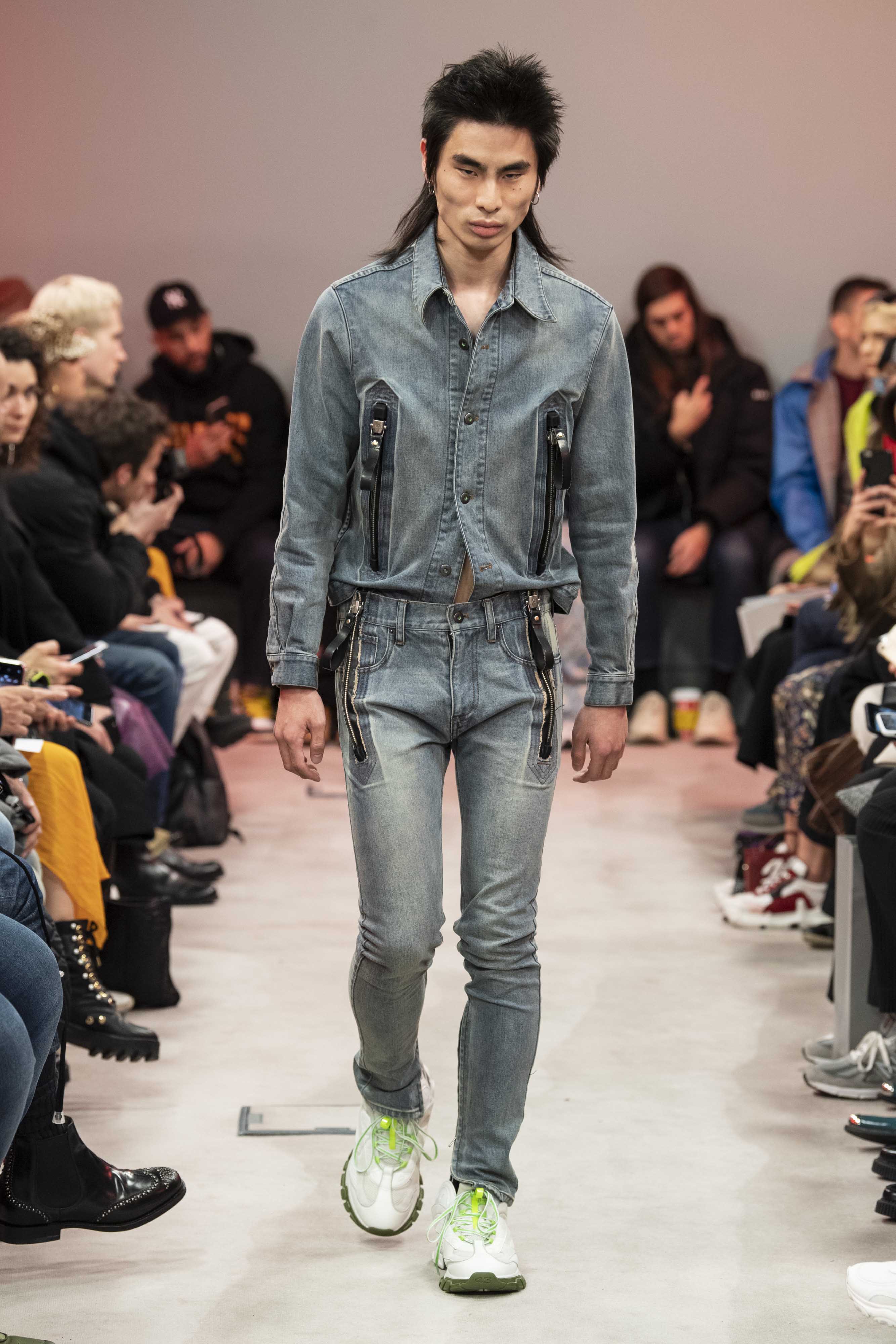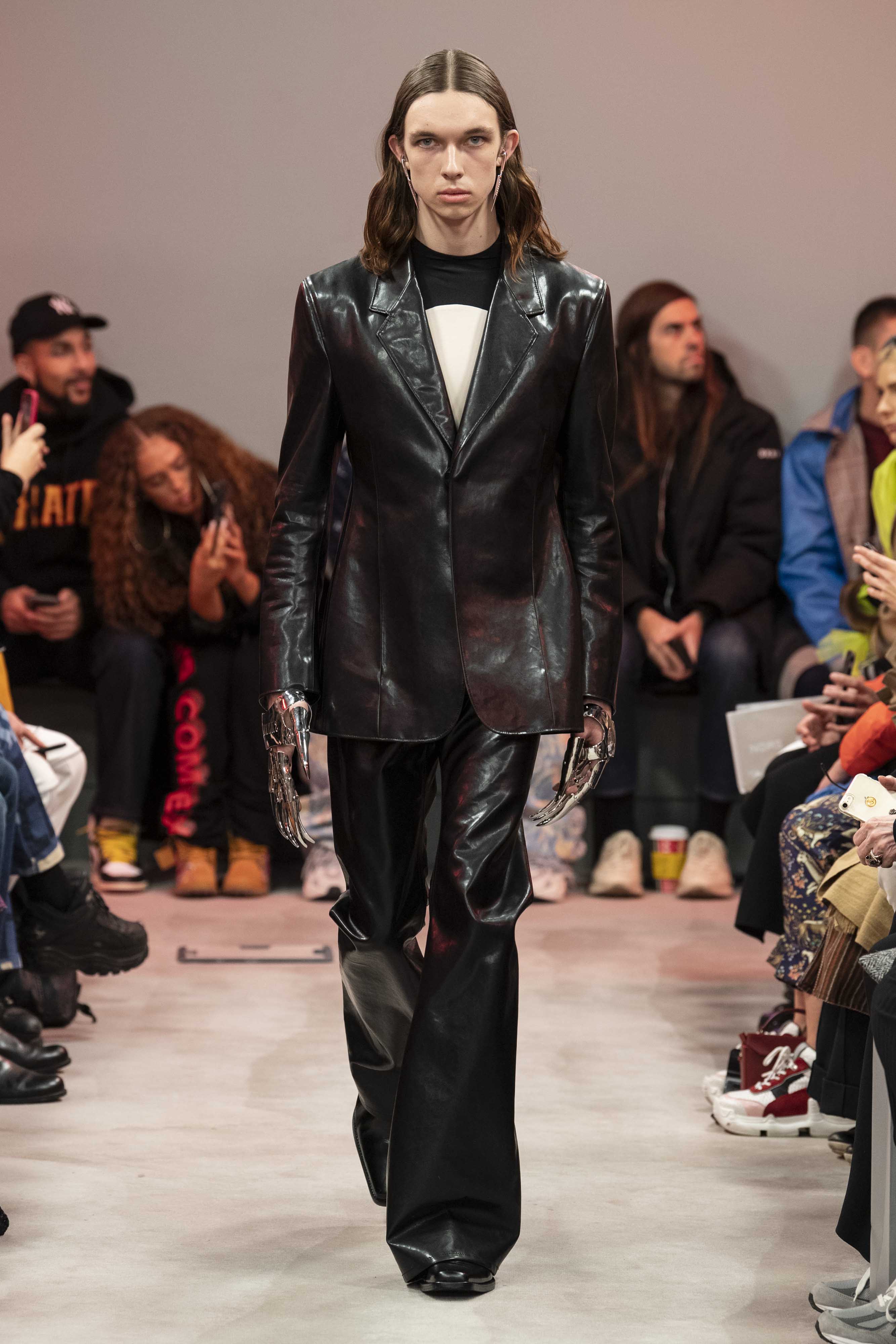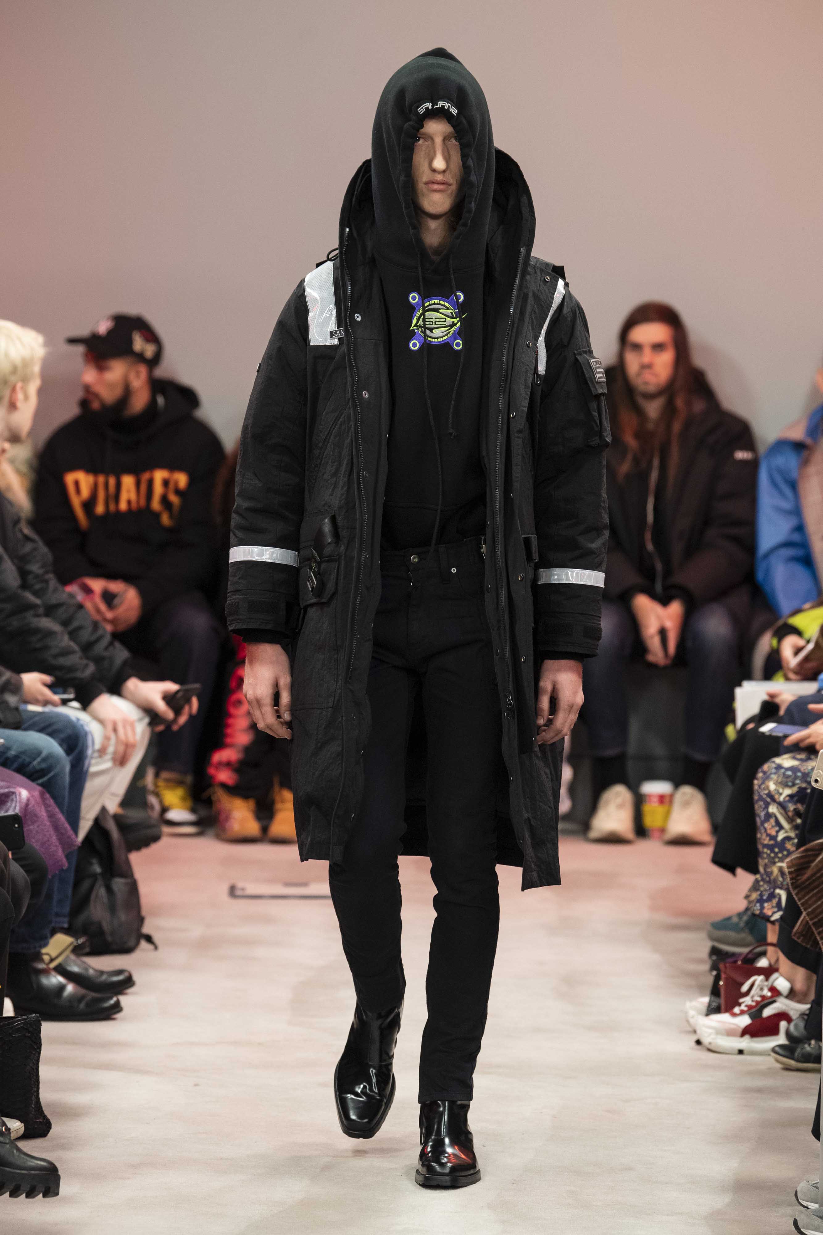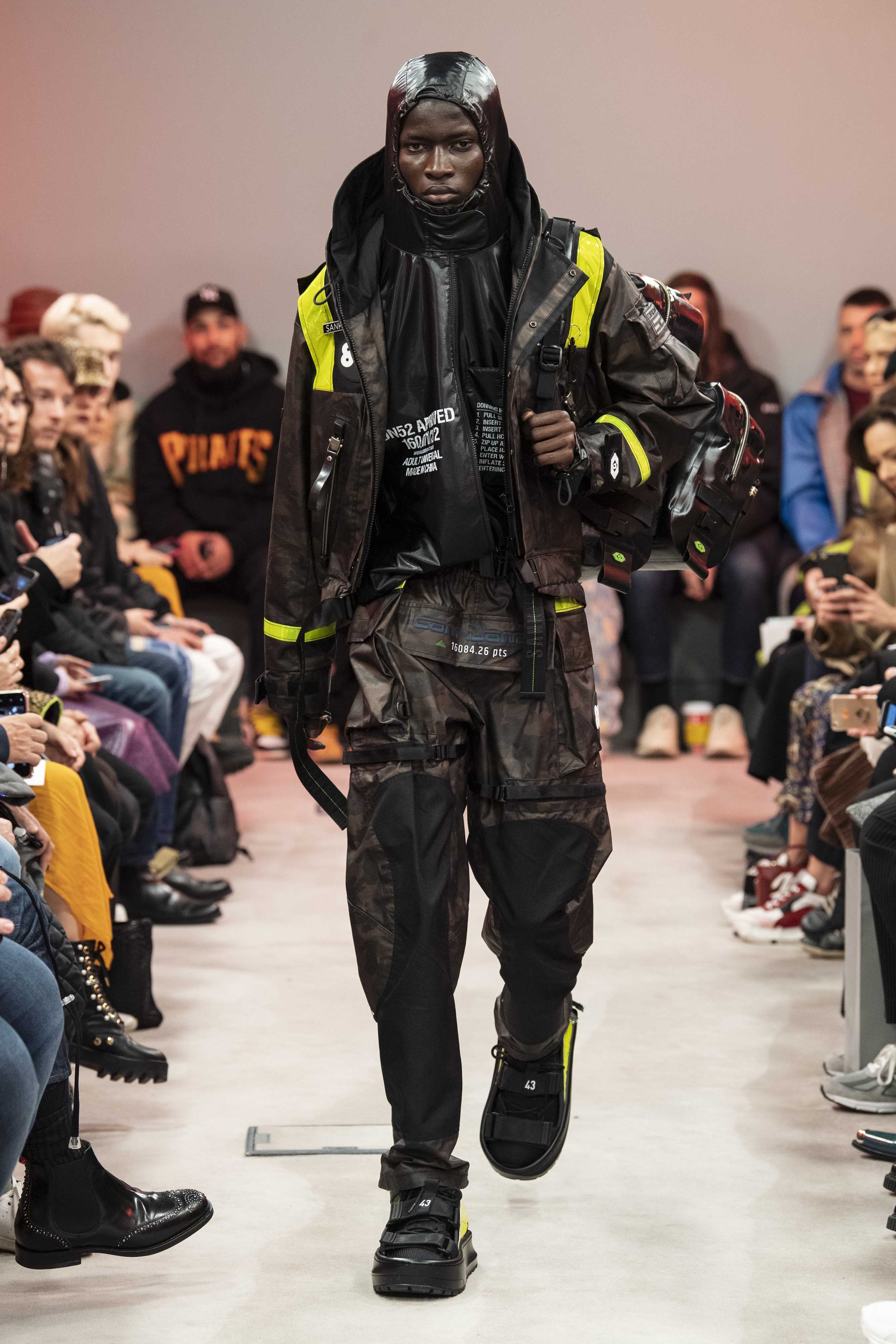 Avec cette collection, le créateur poursuit ses réflexions sur notre monde moderne. Il développe les notions de destruction et de protection, d’attaque et de défense, tout en déconstruisant et reconstruisant. Le cuir noir et le latex sont ici à l’honneur, avec de nombreuses références au monde marin tels que des combinaisons de plongées, des baleines tueuses et des uniformes de navigateurs.