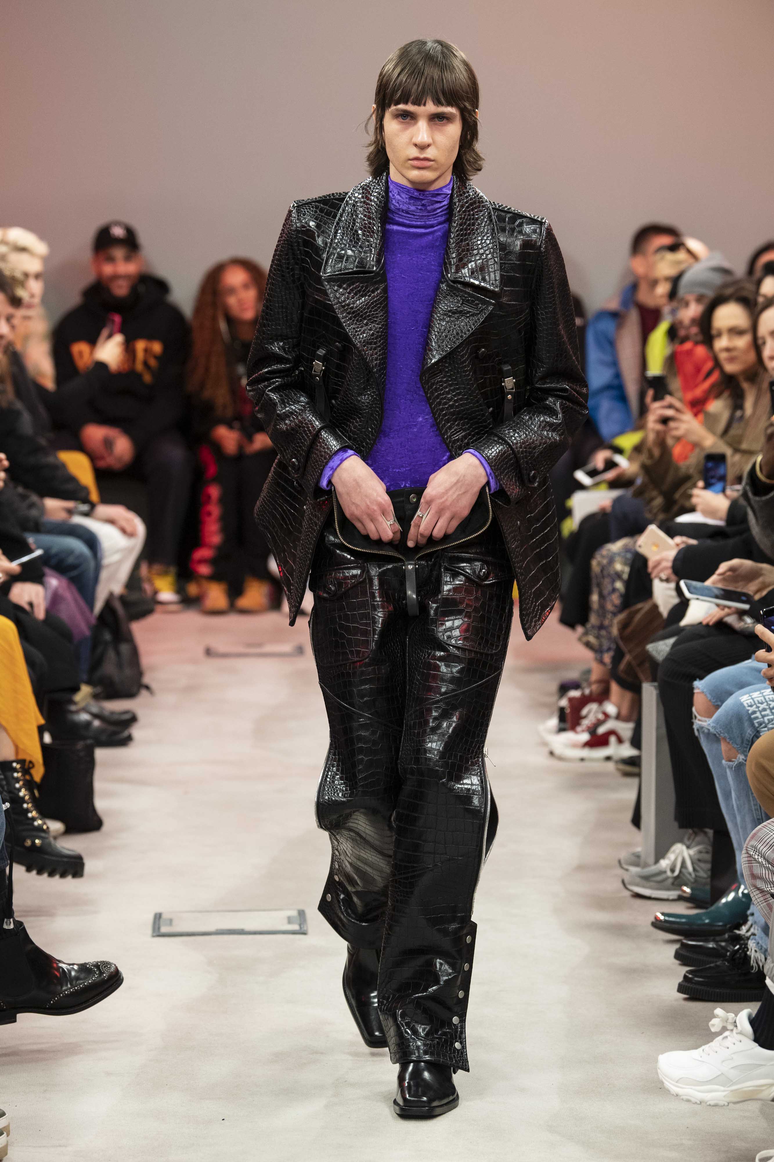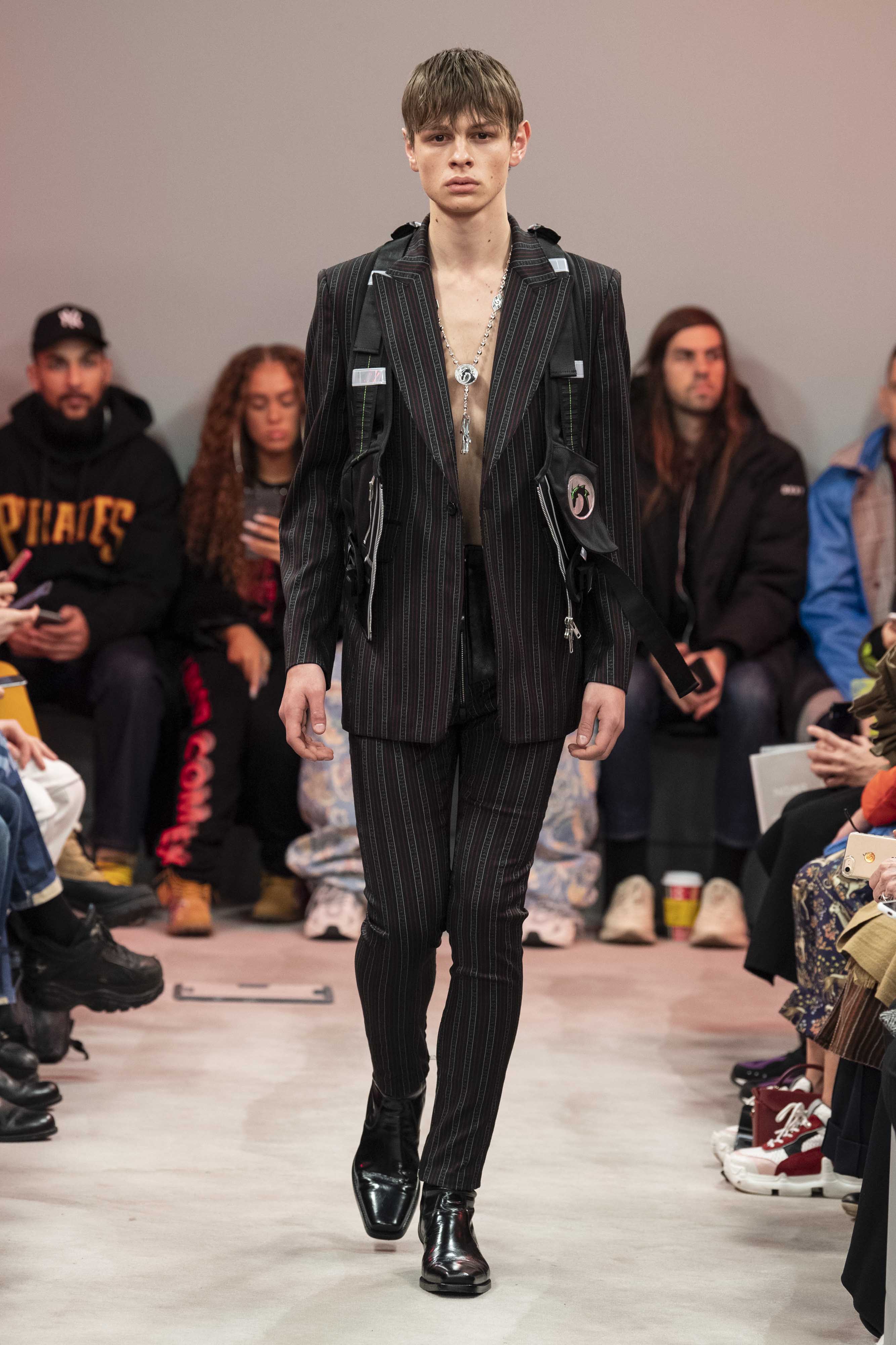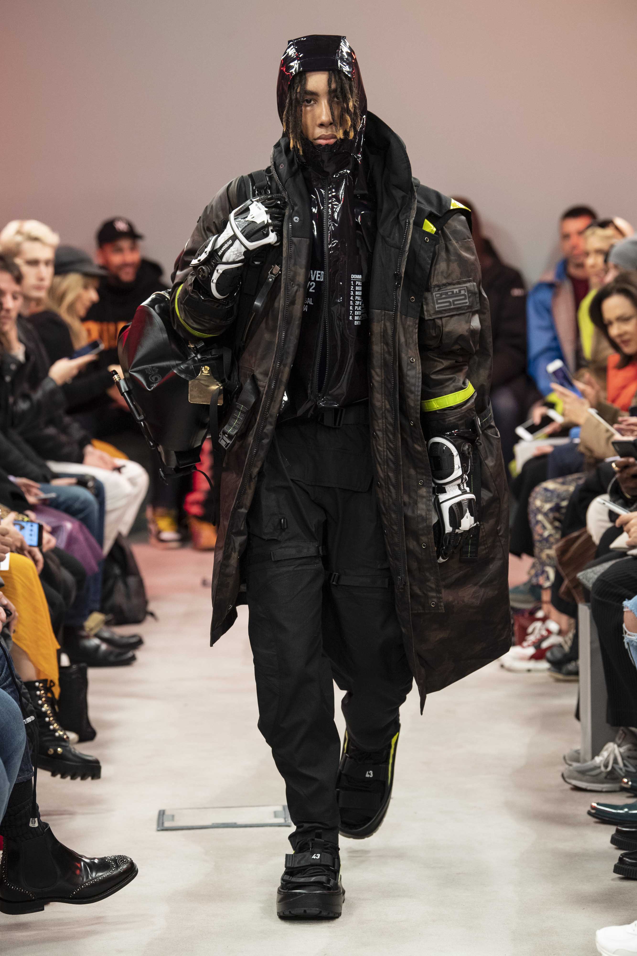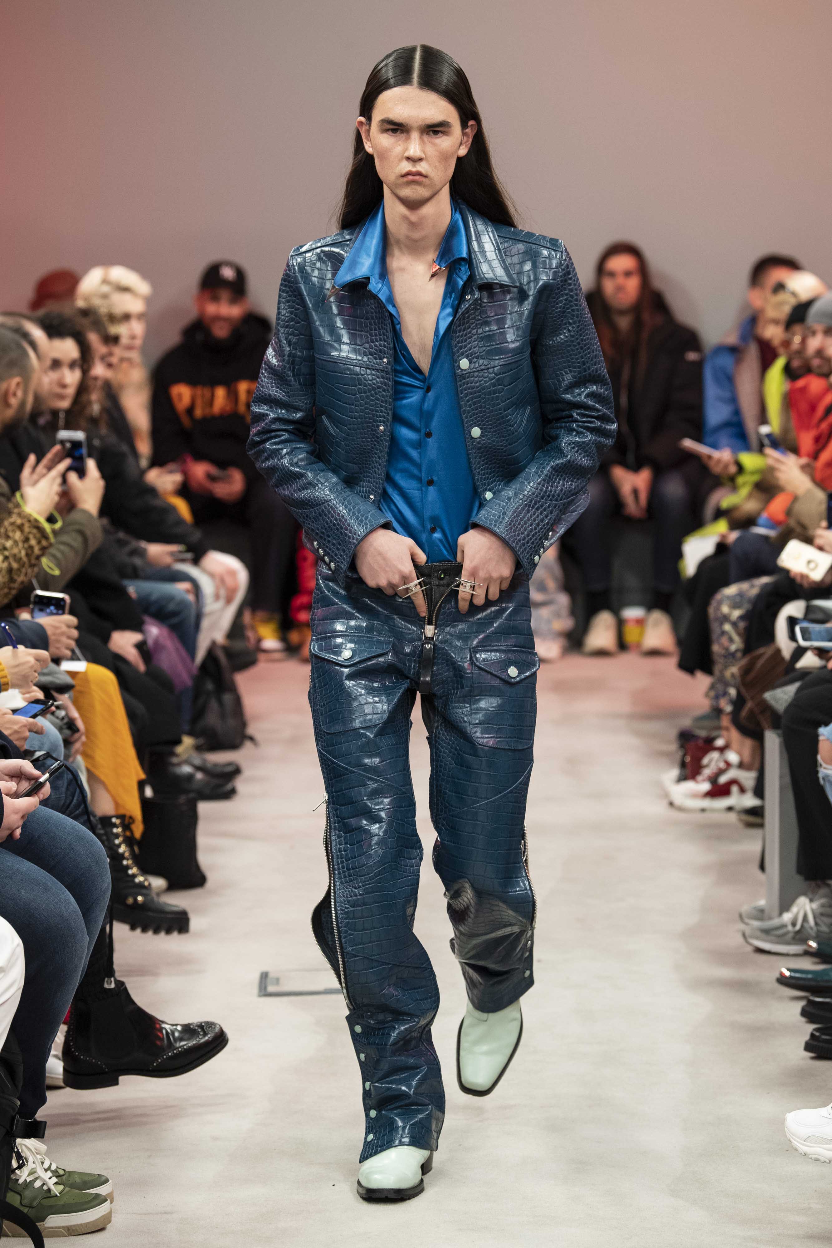 Avec cette collection, le créateur poursuit ses réflexions sur notre monde moderne. Il développe les notions de destruction et de protection, d’attaque et de défense, tout en déconstruisant et reconstruisant. Le cuir noir et le latex sont ici à l’honneur, avec de nombreuses références au monde marin tels que des combinaisons de plongées, des baleines tueuses et des uniformes de navigateurs.