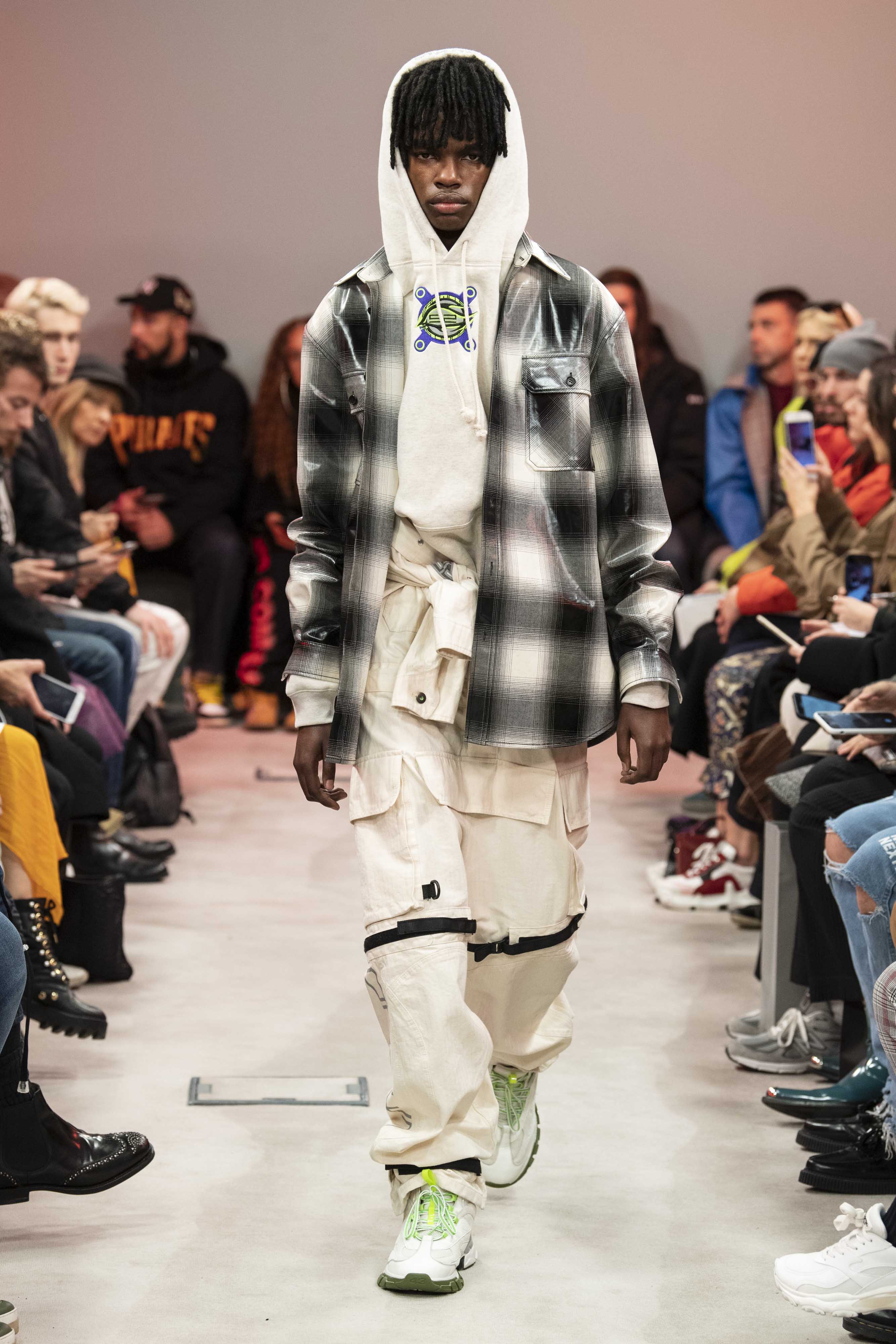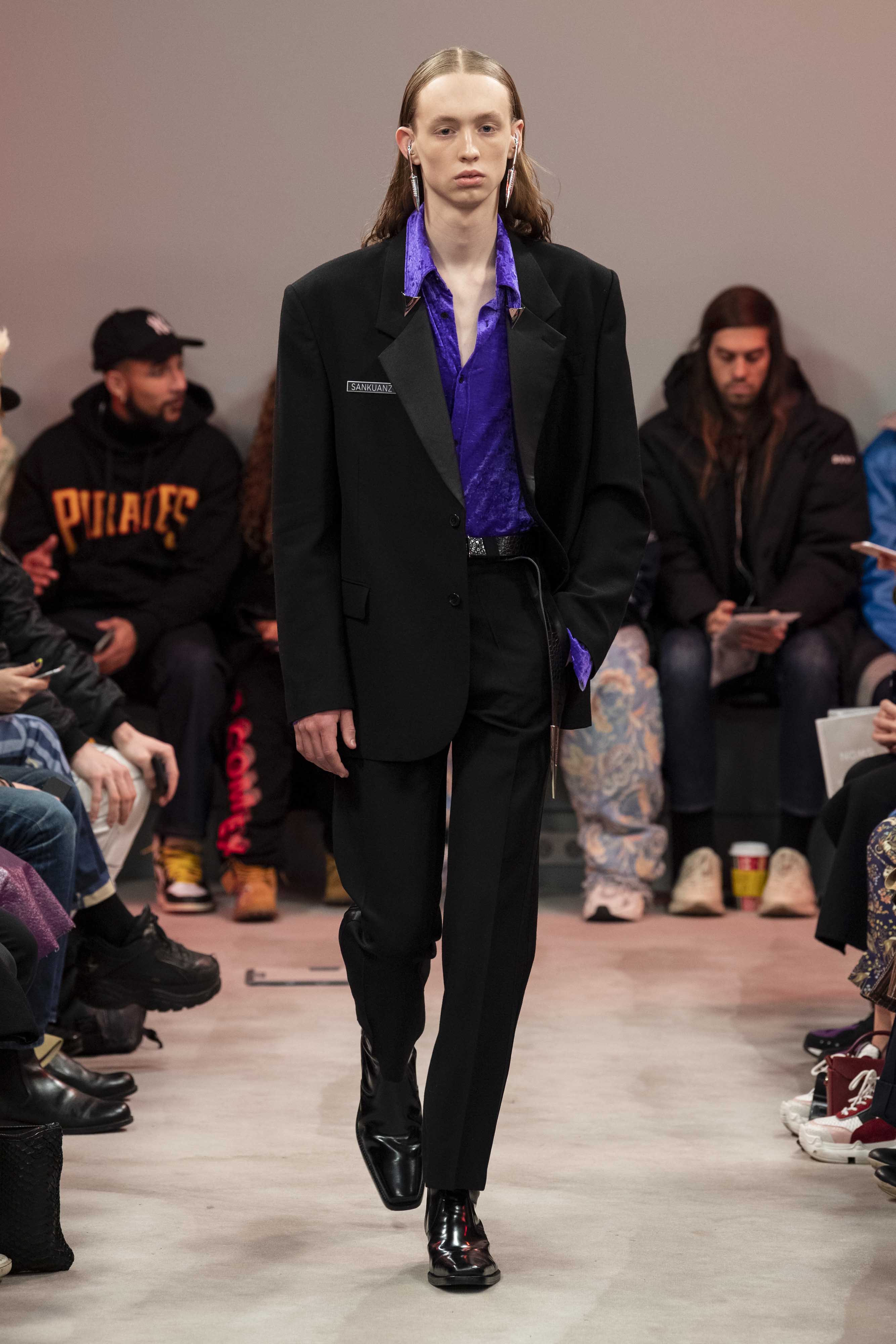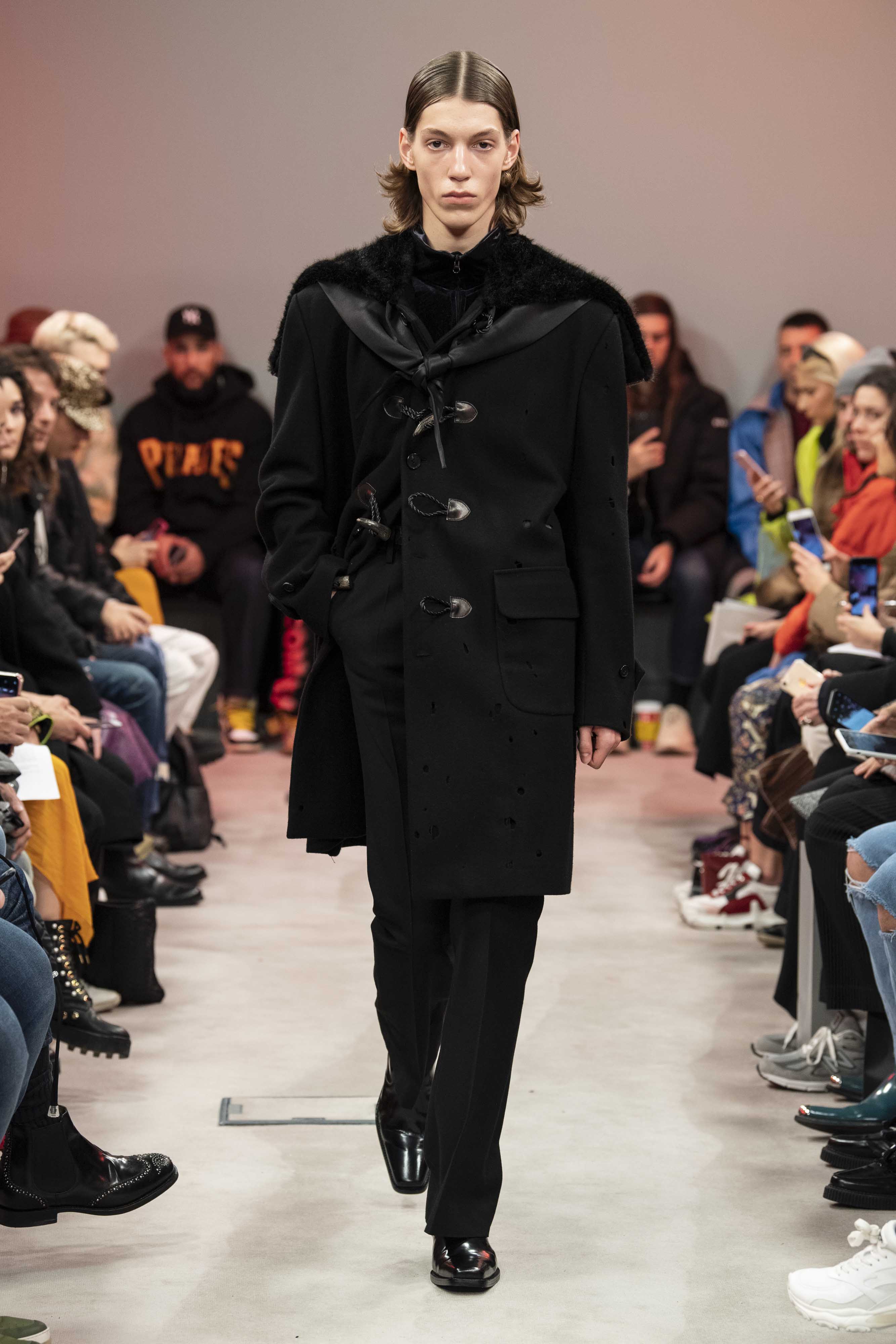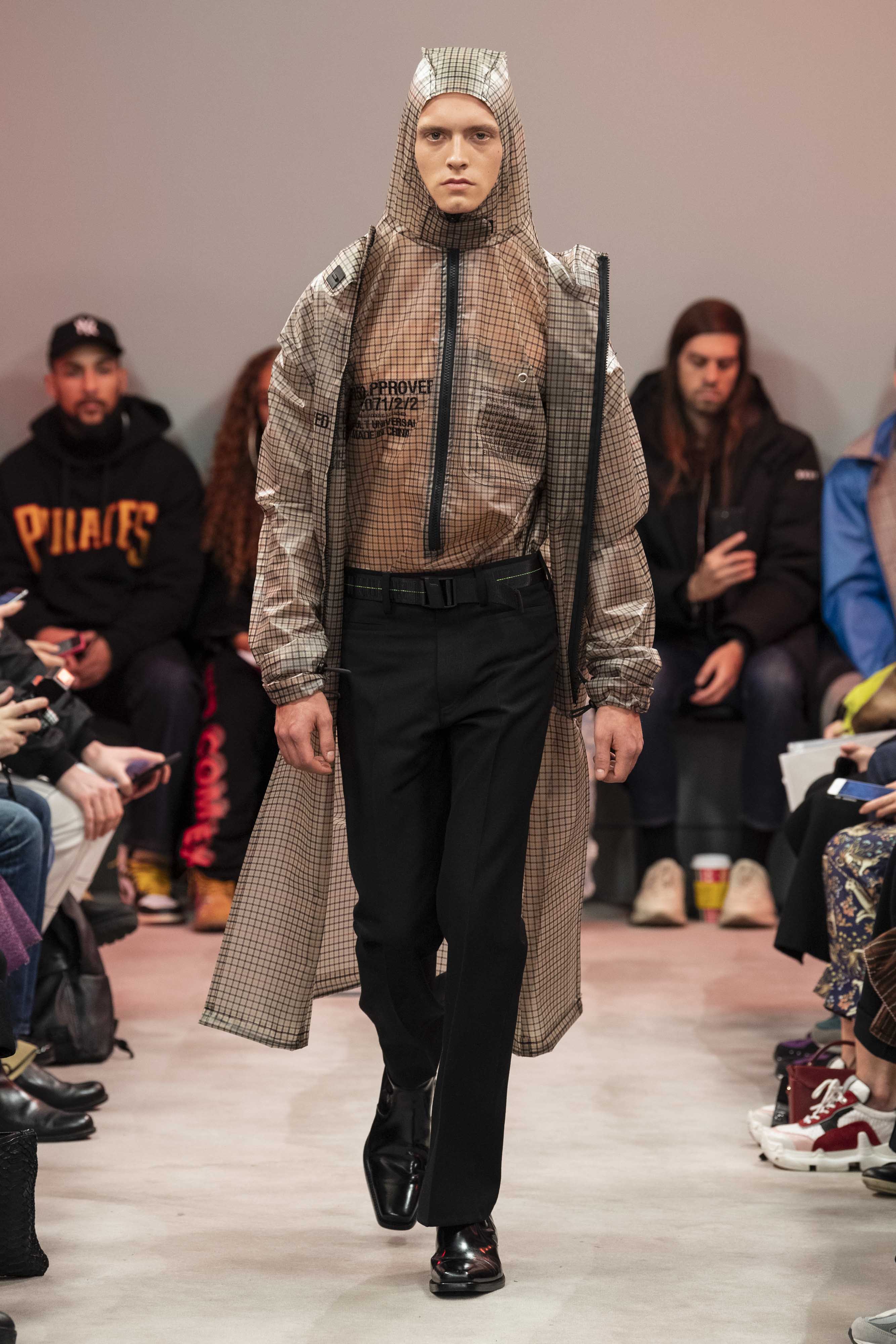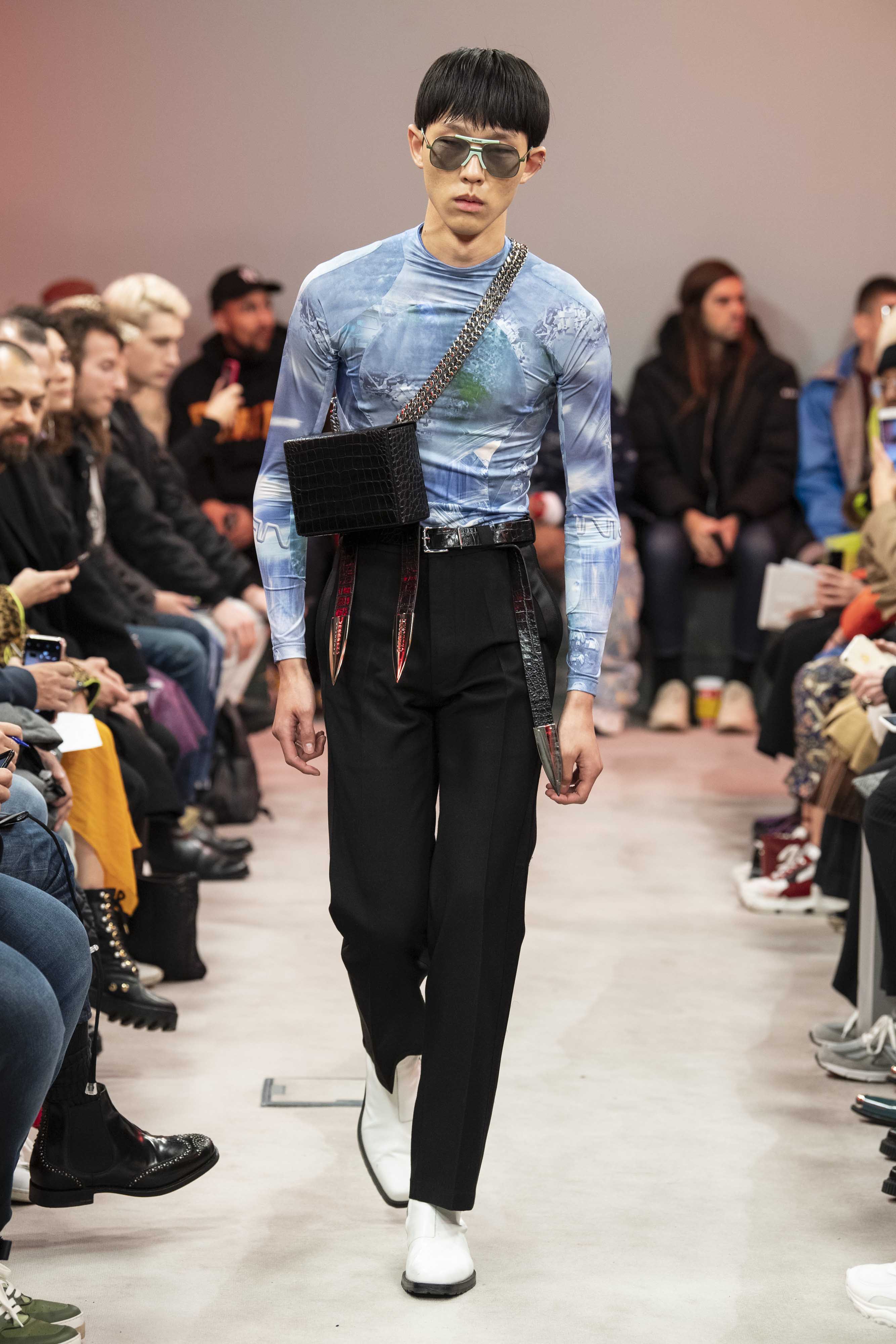 Avec cette collection, le créateur poursuit ses réflexions sur notre monde moderne. Il développe les notions de destruction et de protection, d’attaque et de défense, tout en déconstruisant et reconstruisant. Le cuir noir et le latex sont ici à l’honneur, avec de nombreuses références au monde marin tels que des combinaisons de plongées, des baleines tueuses et des uniformes de navigateurs.