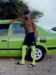 Au cœur de la collection, une pièce familière devient symbole : le chasuble d’entraînement jaune fluo, référence directe aux matchs amateurs du dimanche. Habituellement utilitaire, il est ici élevé au rang d’élément graphique central, guidant les matières en mesh et l’esthétique générale.
