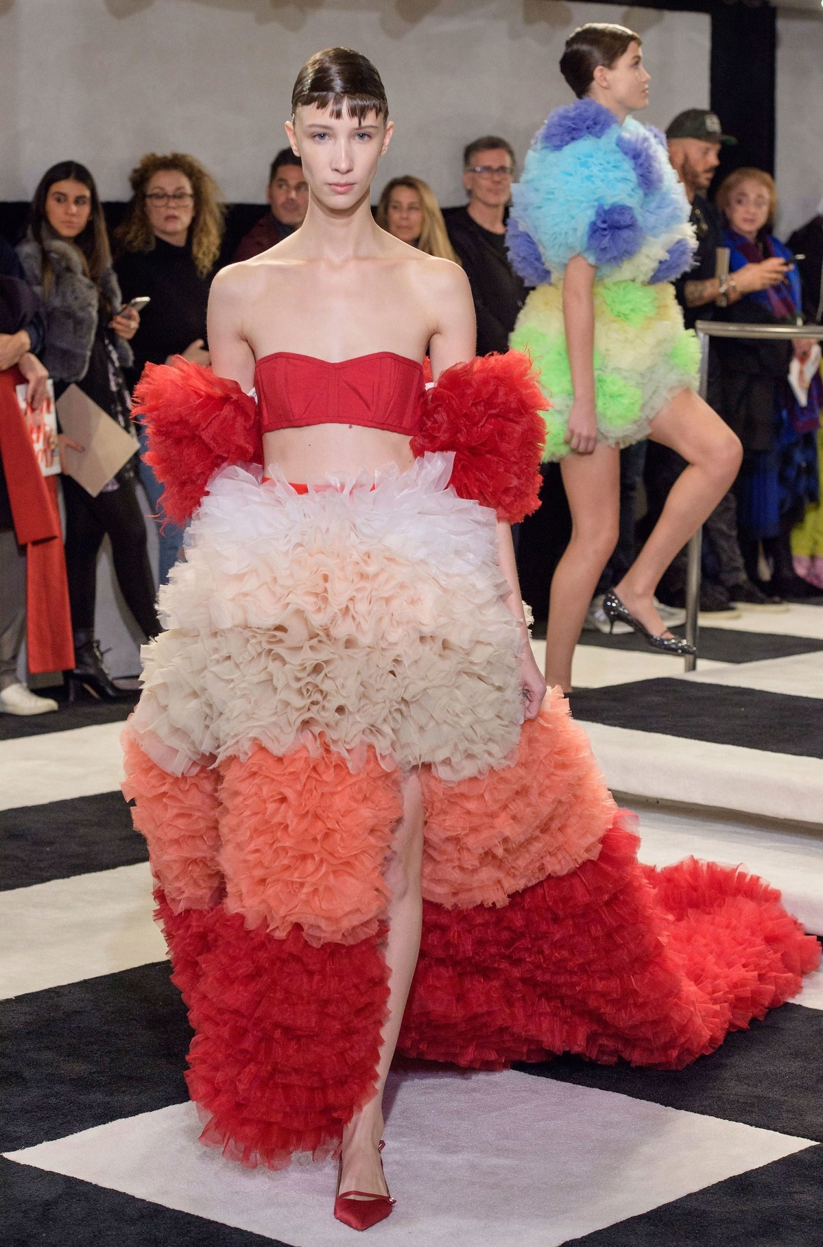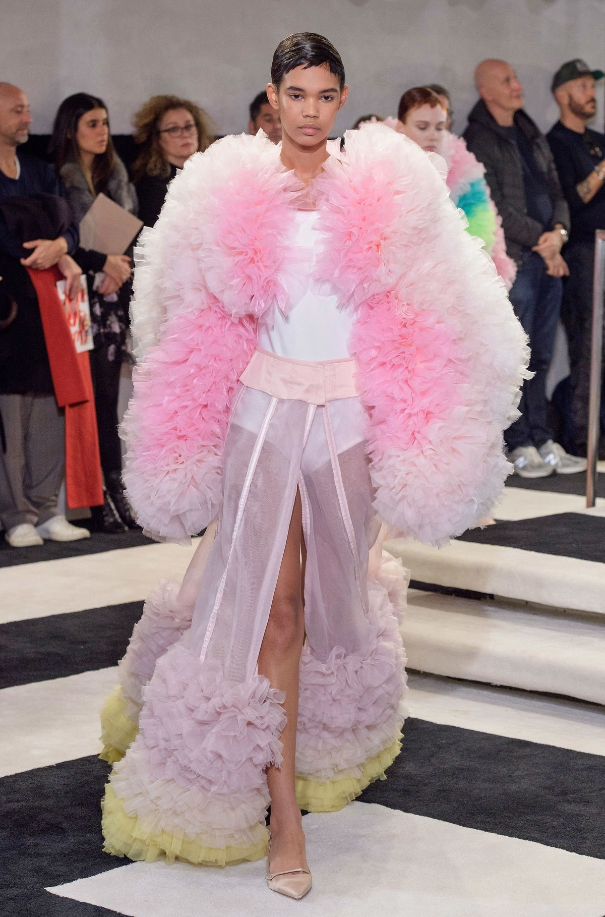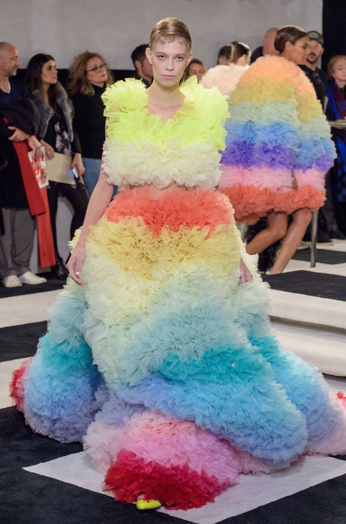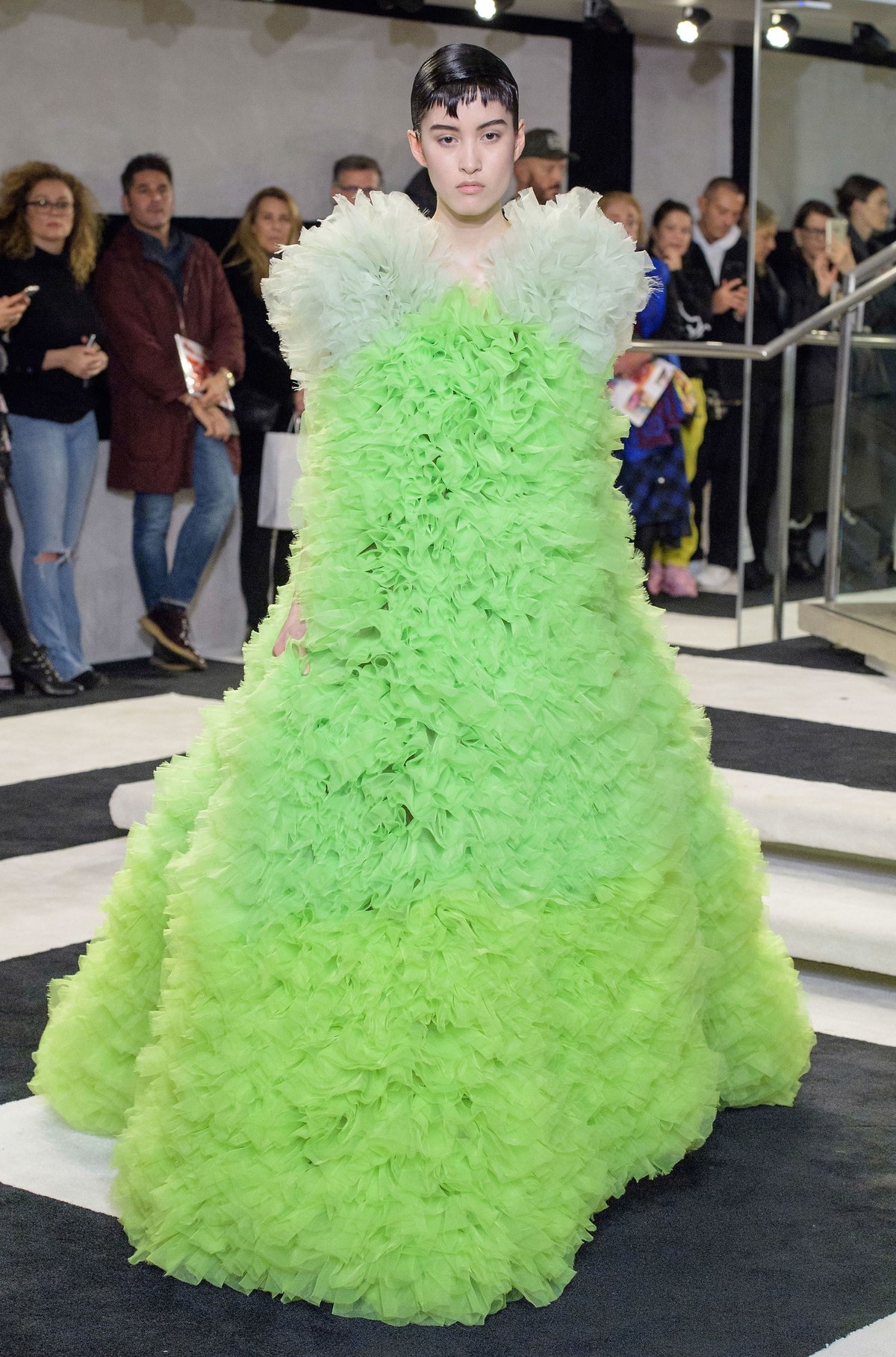 Une success-story réalisée en un éclair, des robes divines, des mannequins célèbres et le tour était joué. Tomo Koizumi a principalement imaginé des looks en organza venu tout droit du Japon, créant ainsi des silhouettes colorées et tape à l’œil pour une Femme à la fois forte et enfantine. Il cite parmi ses inspirations Cristóbal Balenciaga, Leigh Bowery mais aussi Sailor Moon. Le designer japonais a su faire sensation lors de la Fashion Week de New York avec des robes qu’on ne risque pas d’oublier !