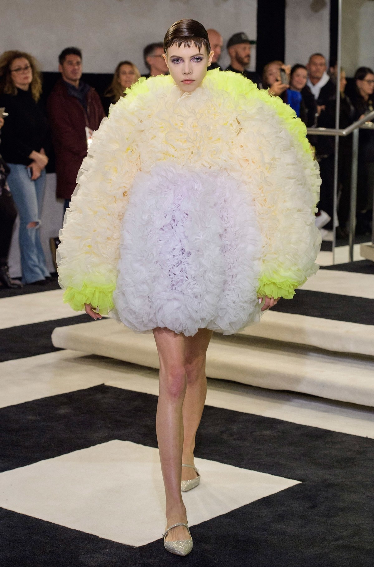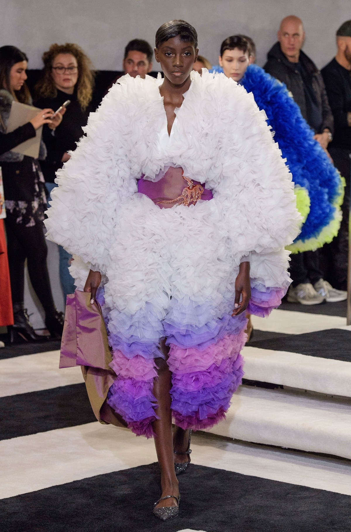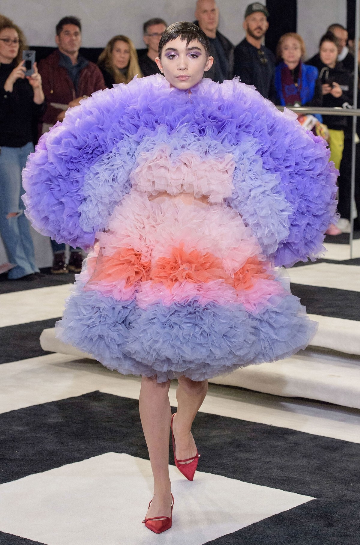 Une success-story réalisée en un éclair, des robes divines, des mannequins célèbres et le tour était joué. Tomo Koizumi a principalement imaginé des looks en organza venu tout droit du Japon, créant ainsi des silhouettes colorées et tape à l’œil pour une Femme à la fois forte et enfantine. Il cite parmi ses inspirations Cristóbal Balenciaga, Leigh Bowery mais aussi Sailor Moon. Le designer japonais a su faire sensation lors de la Fashion Week de New York avec des robes qu’on ne risque pas d’oublier !