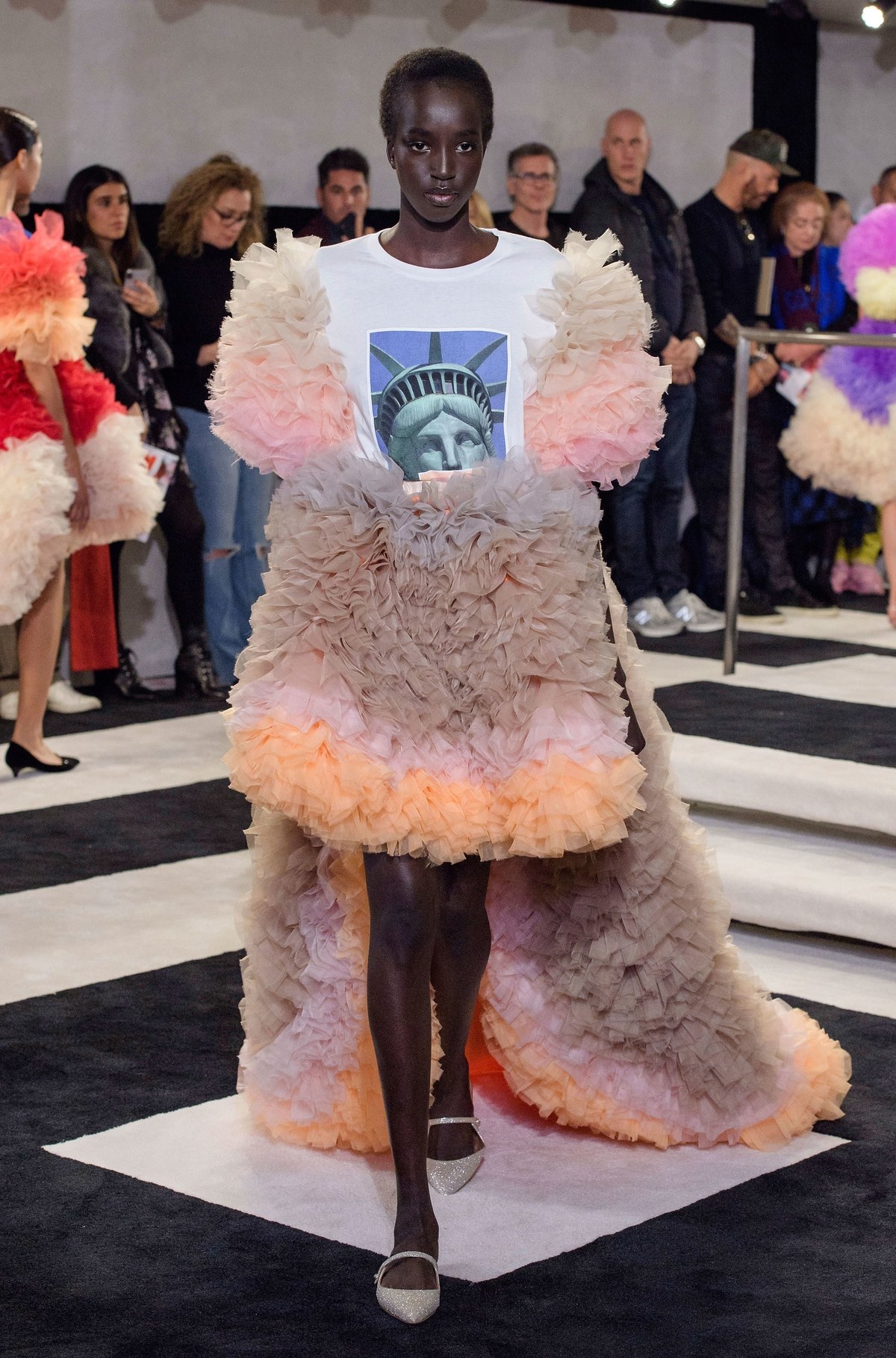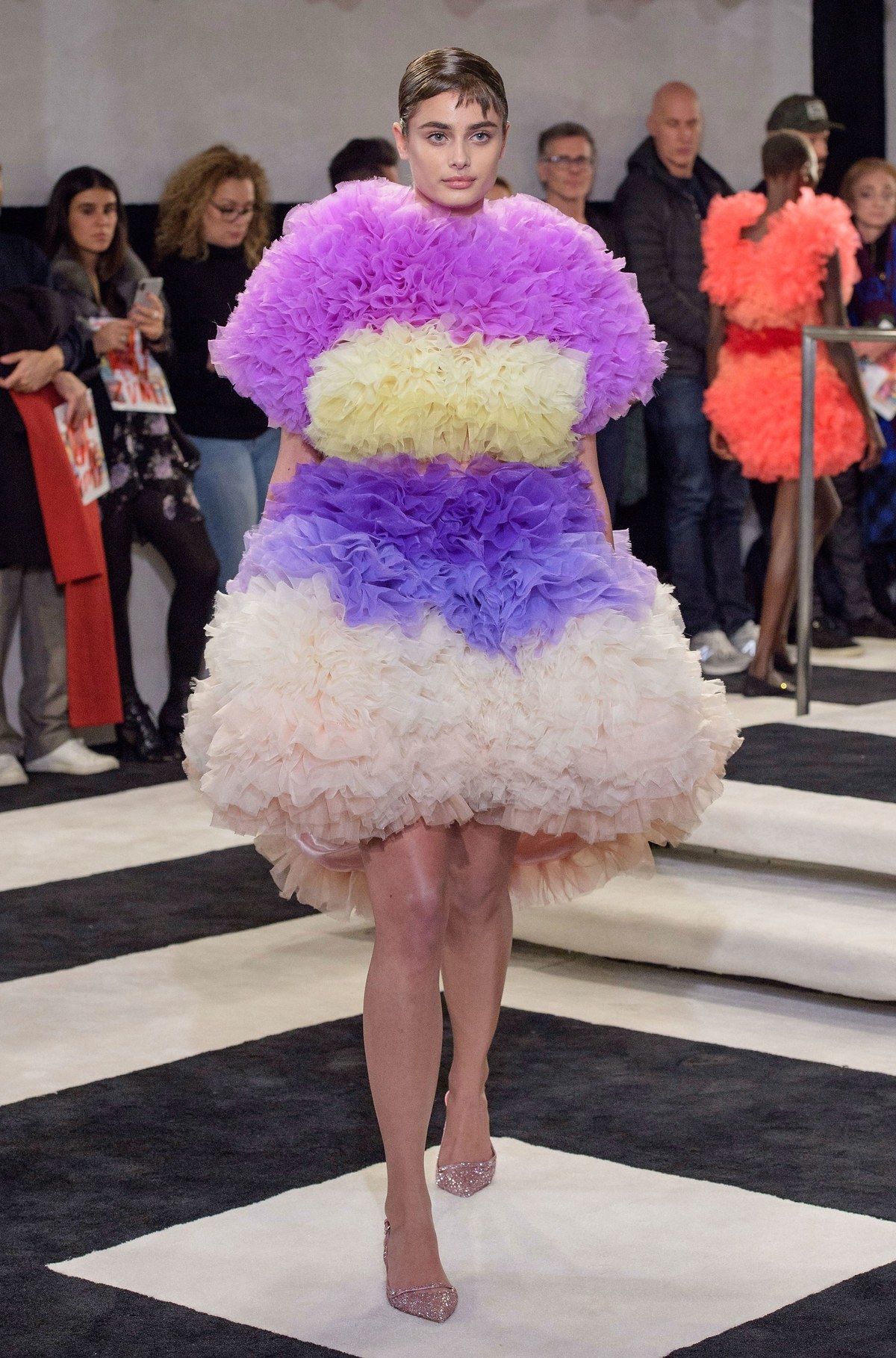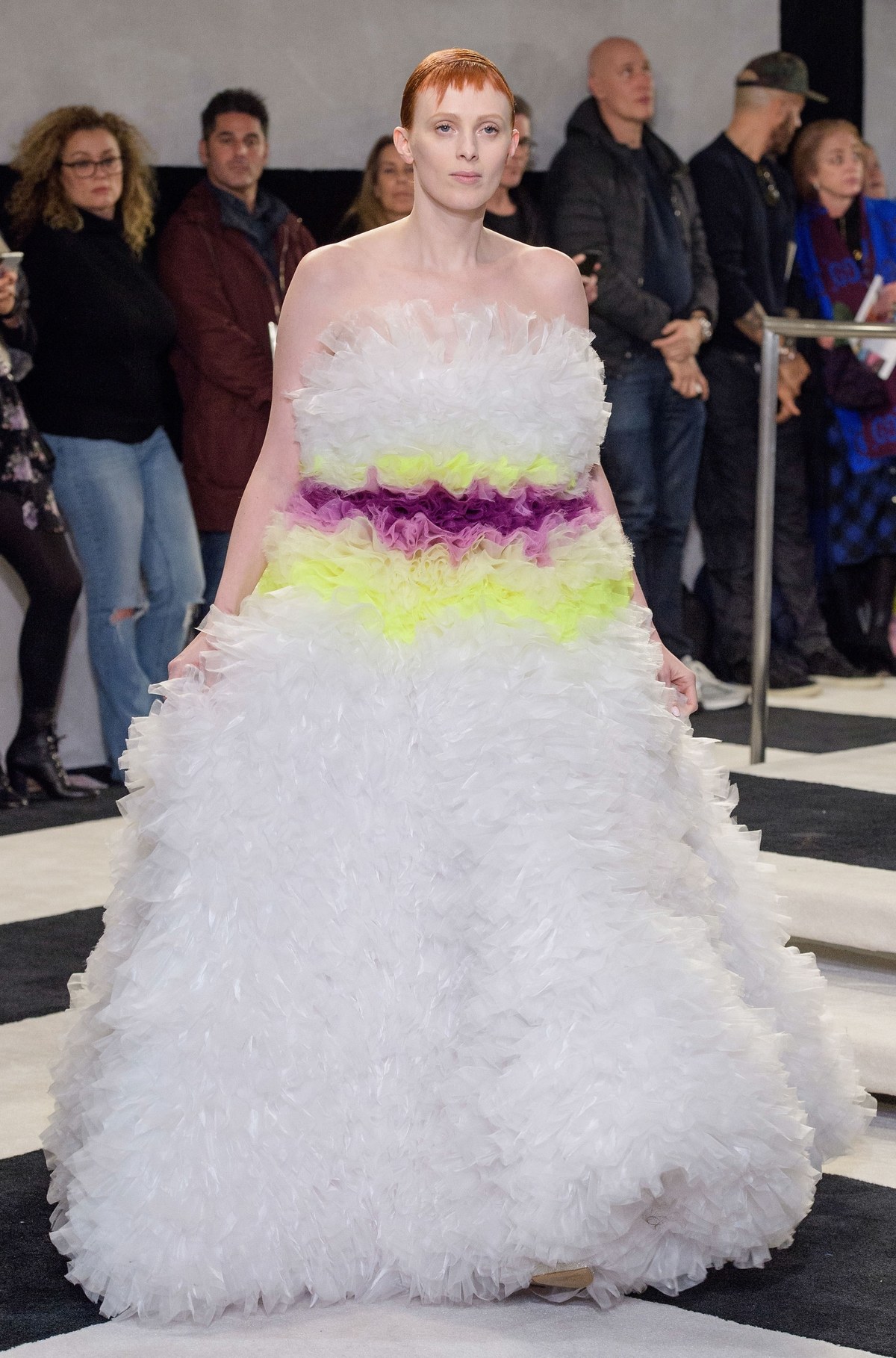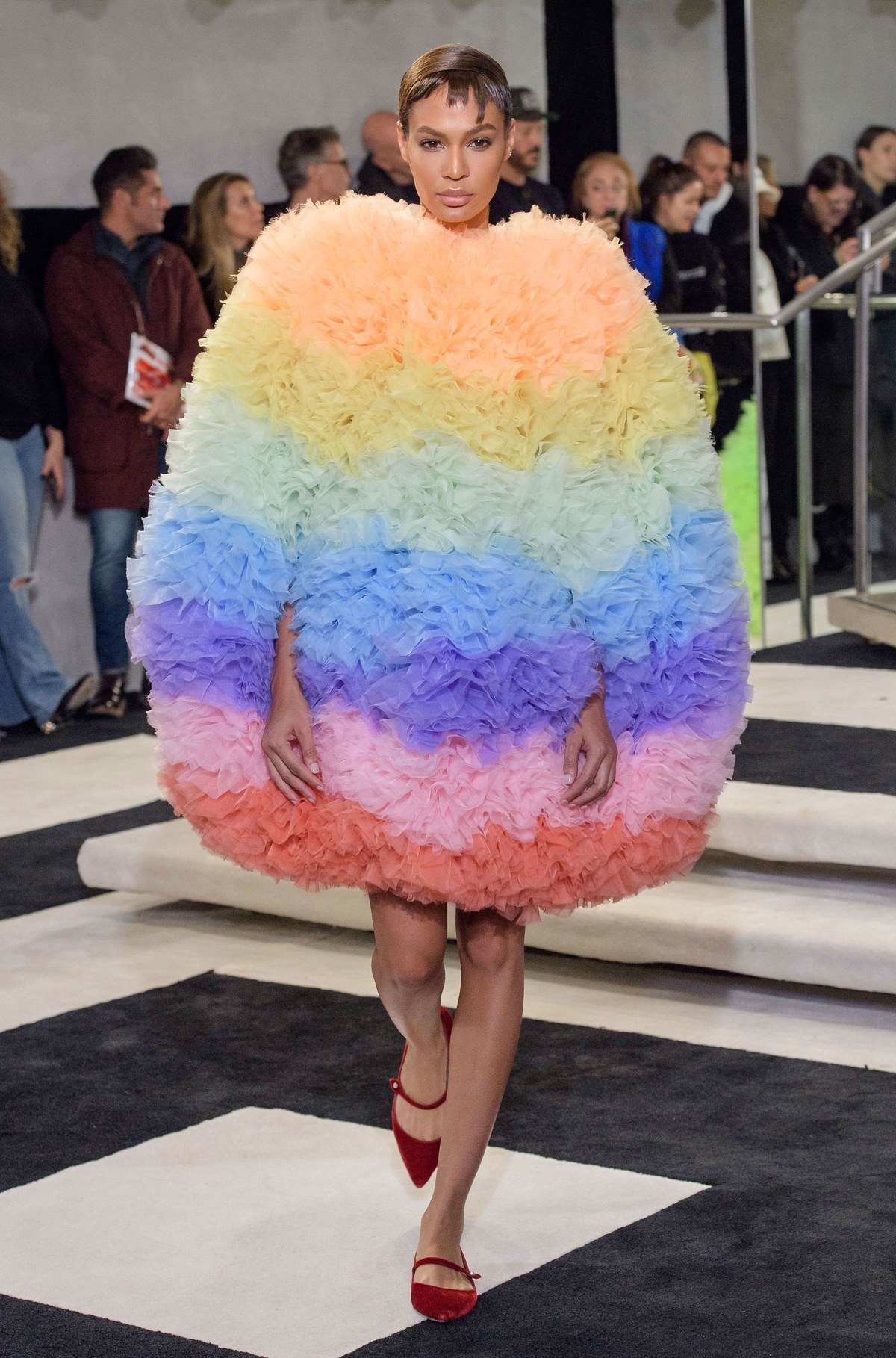 Une success-story réalisée en un éclair, des robes divines, des mannequins célèbres et le tour était joué. Tomo Koizumi a principalement imaginé des looks en organza venu tout droit du Japon, créant ainsi des silhouettes colorées et tape à l’œil pour une Femme à la fois forte et enfantine. Il cite parmi ses inspirations Cristóbal Balenciaga, Leigh Bowery mais aussi Sailor Moon. Le designer japonais a su faire sensation lors de la Fashion Week de New York avec des robes qu’on ne risque pas d’oublier !