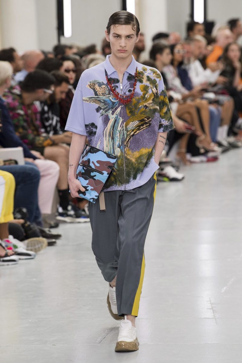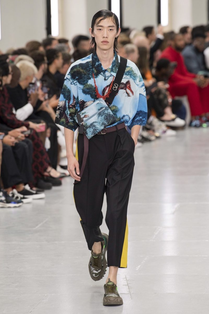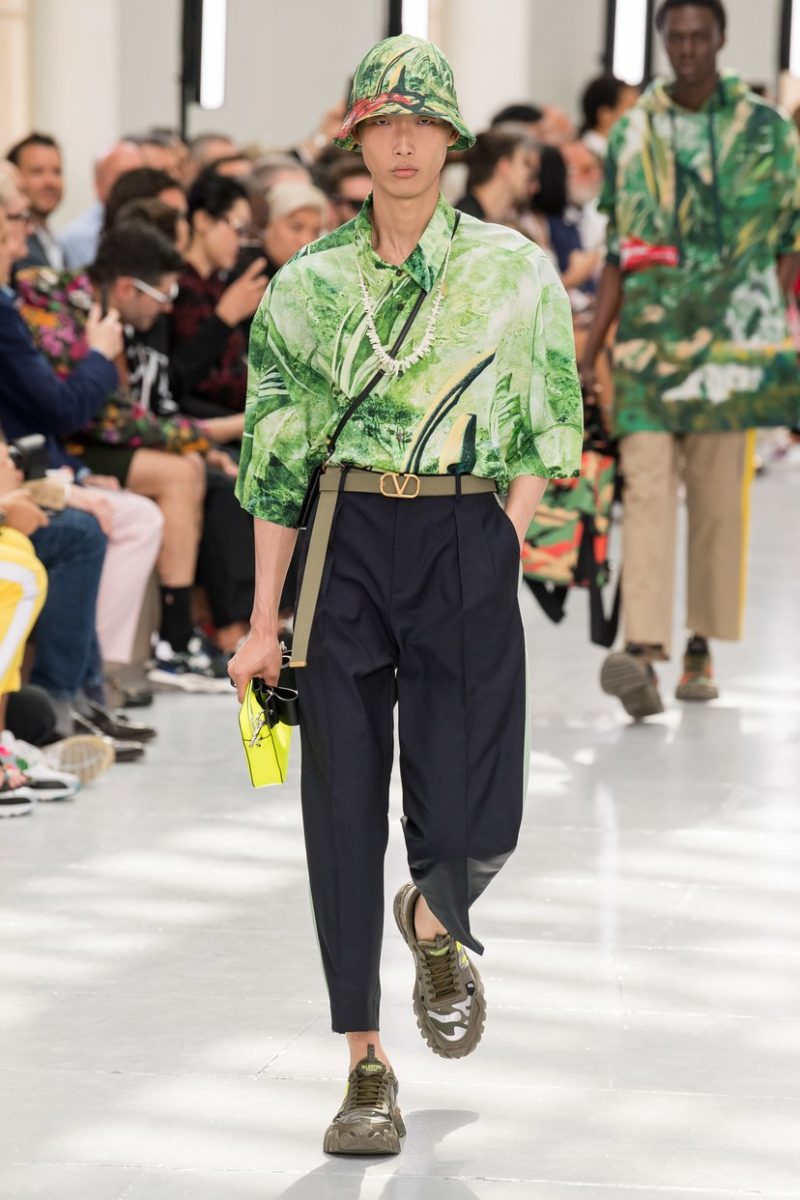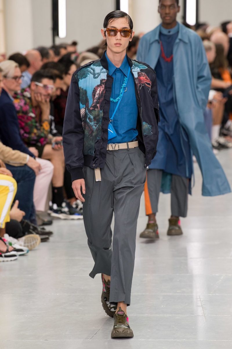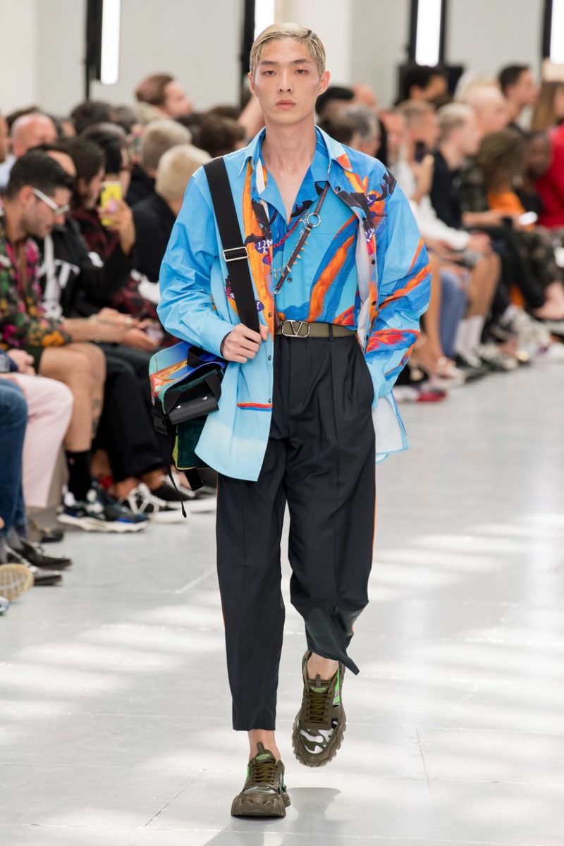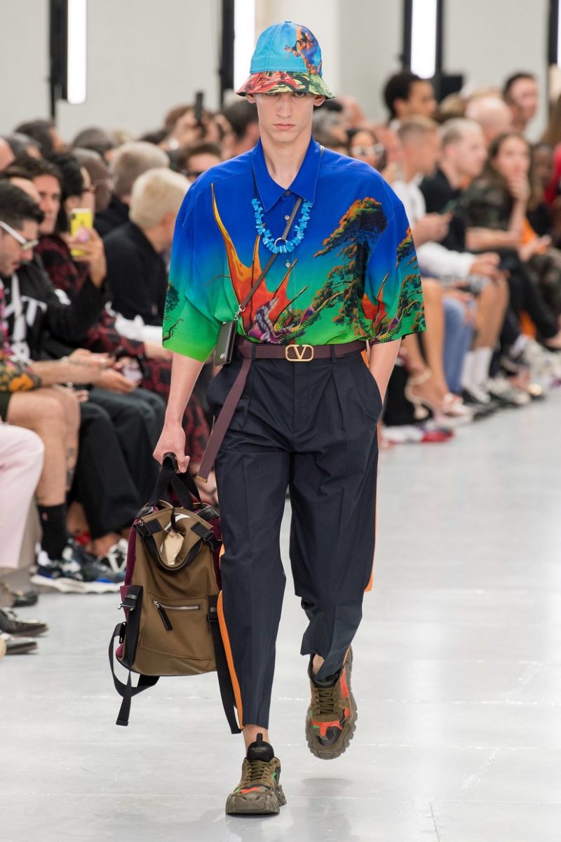 Valentino a présenté sa nouvelle collection printemps-été 2020 lors de la Fashion Week Homme de Paris. Pierpaolo Piccoli nous emmène cette saison en voyage. Laissez-vous séduire par les imprimés colorés imaginés par l’artiste britannique Roger Dean ! Animaux imaginaires et autres lézards se prélassent sur les pulls et les chemises de la collection. Découvrez dès maintenant tous les looks du défilé Valentino en photos.