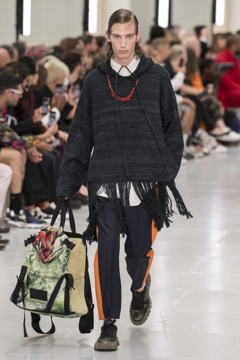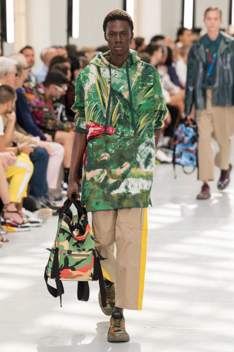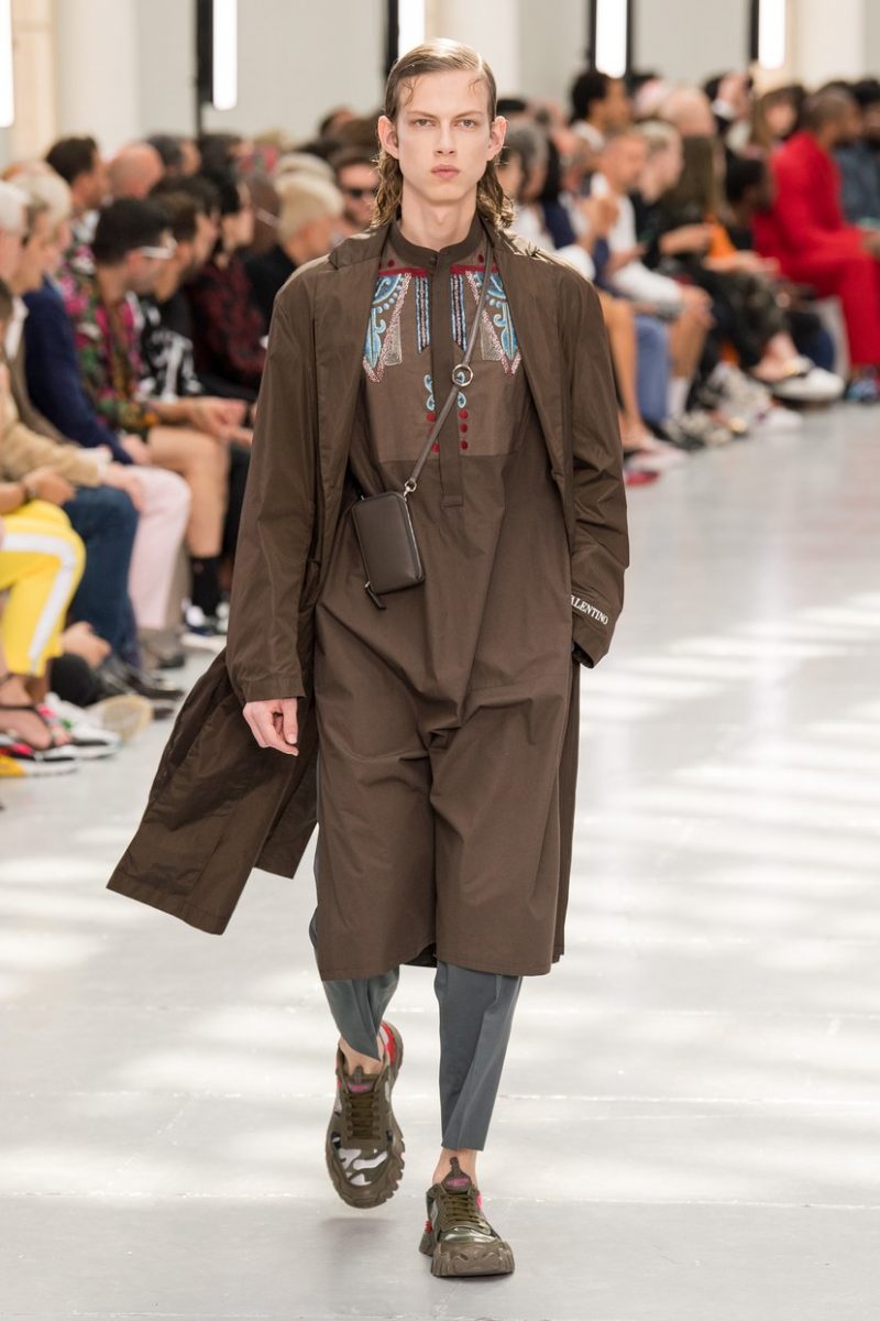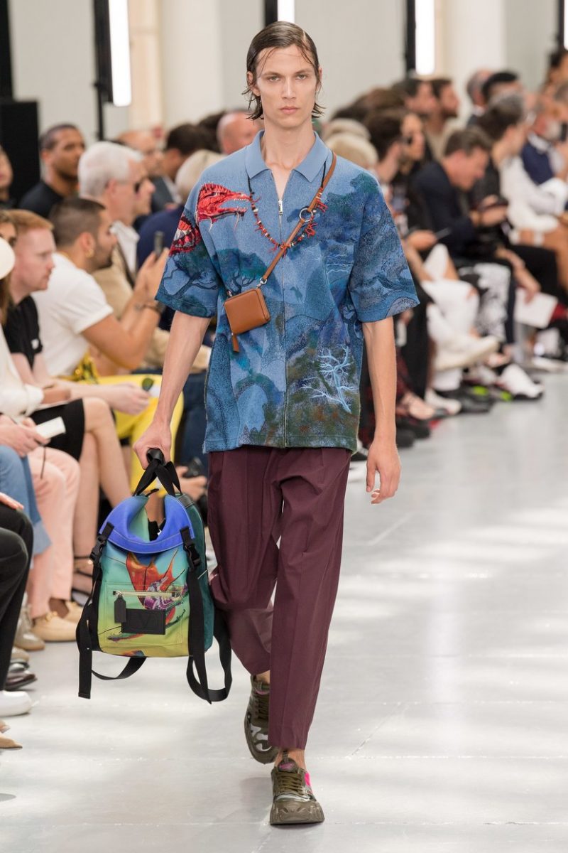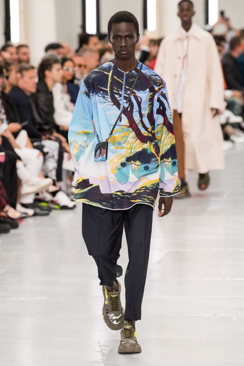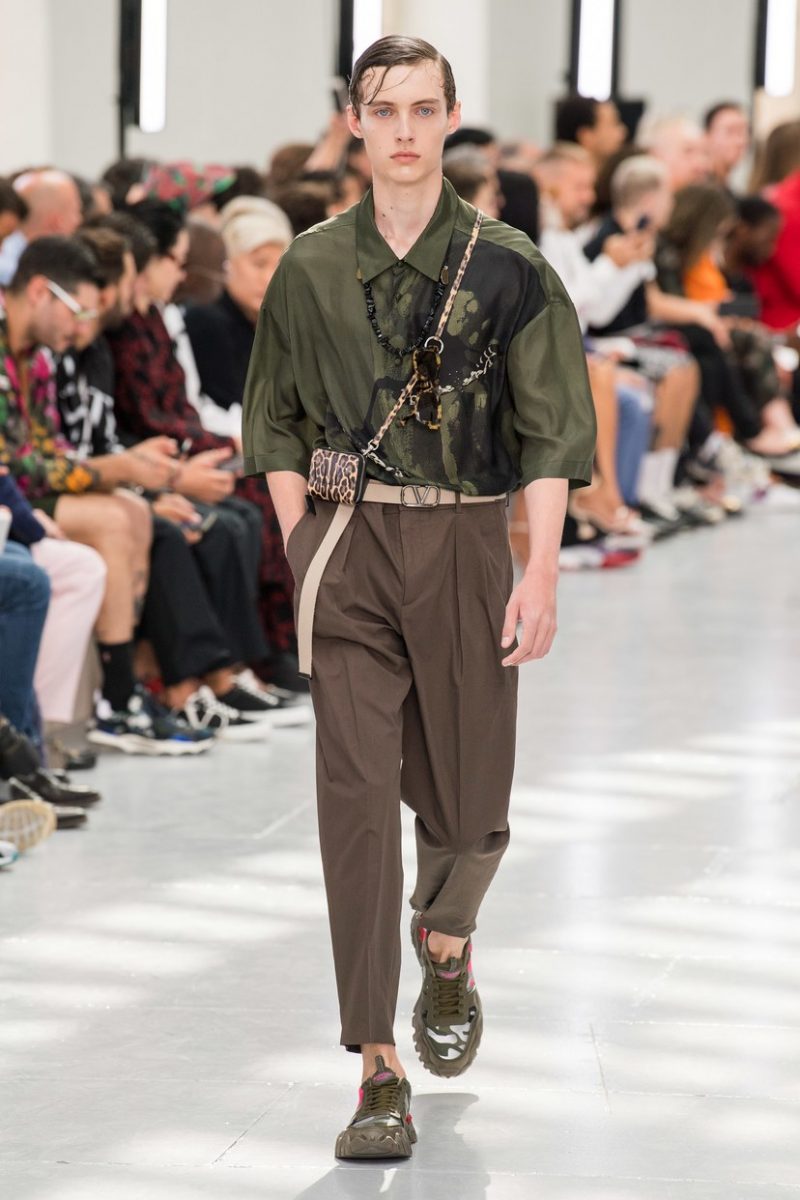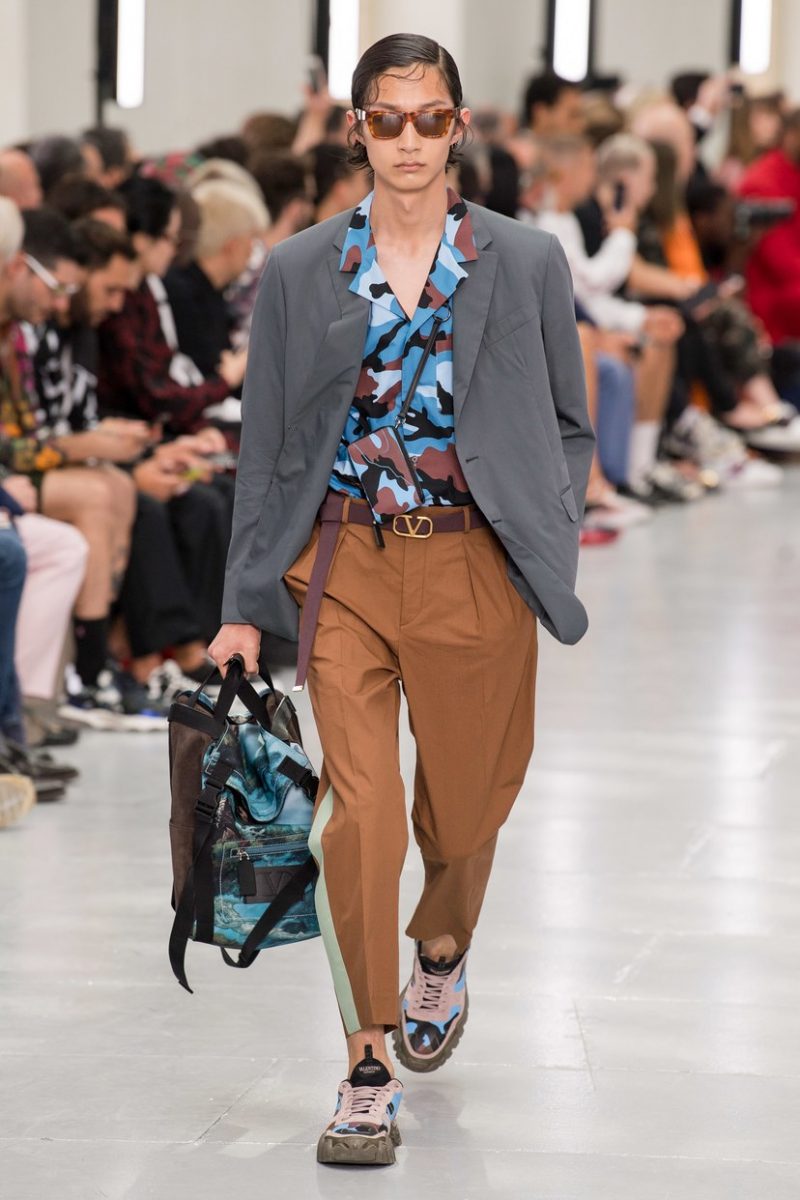 Valentino a présenté sa nouvelle collection printemps-été 2020 lors de la Fashion Week Homme de Paris. Pierpaolo Piccoli nous emmène cette saison en voyage. Laissez-vous séduire par les imprimés colorés imaginés par l’artiste britannique Roger Dean ! Animaux imaginaires et autres lézards se prélassent sur les pulls et les chemises de la collection. Découvrez dès maintenant tous les looks du défilé Valentino en photos.