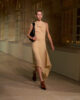 La créatrice joue sur les volumes et les textures : vestes et blazers avec plis et pressages, pantalons paper-bag, surchemises oversized et parkas en coton, denim japonais et nubuck froissé. Les robes et tops, délicatement froissés ou ornés de plissé et de crinoline, évoquent la spontanéité et la liberté du style adolescent. La palette de couleurs mêle sable, corail, aquamarine et bleu brume, un clin d’œil aux souvenirs sensoriels de Victoria Beckham entre enfance et jeunesse.