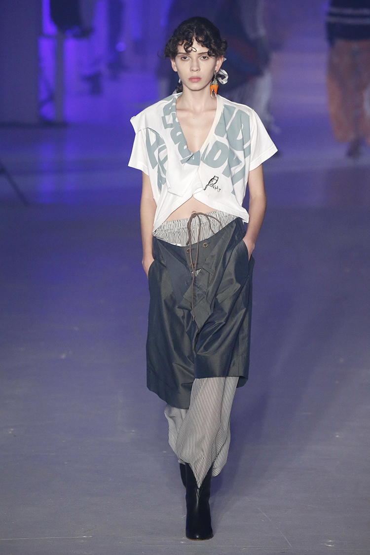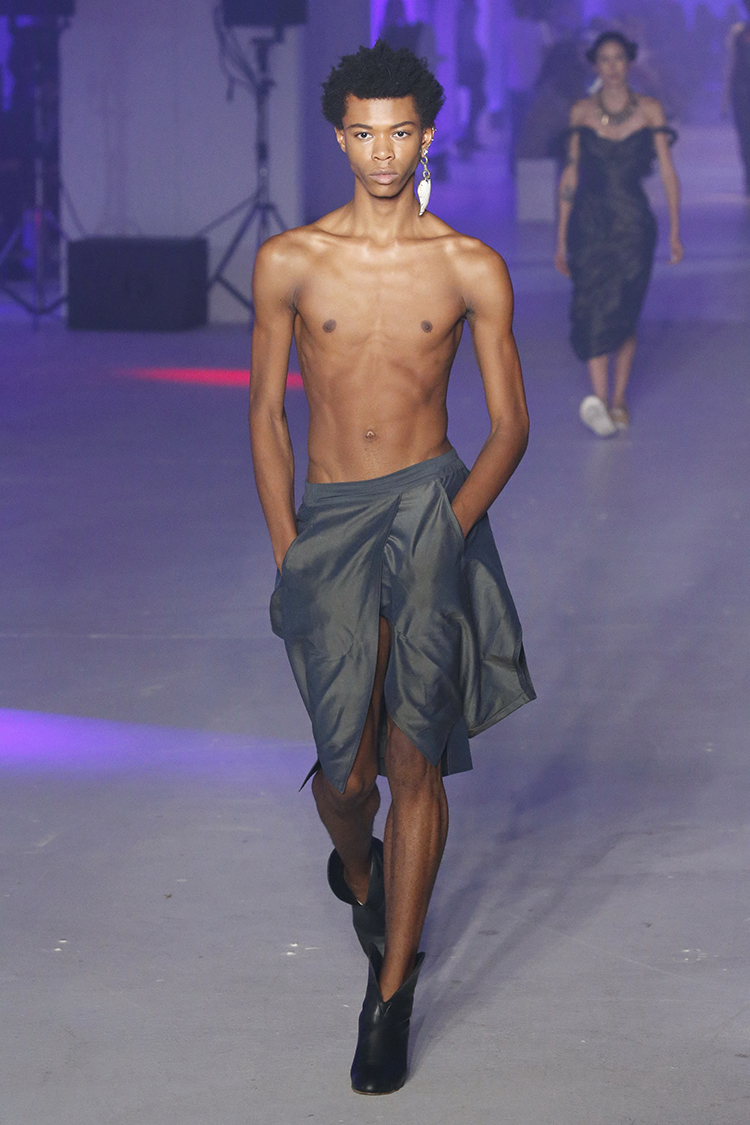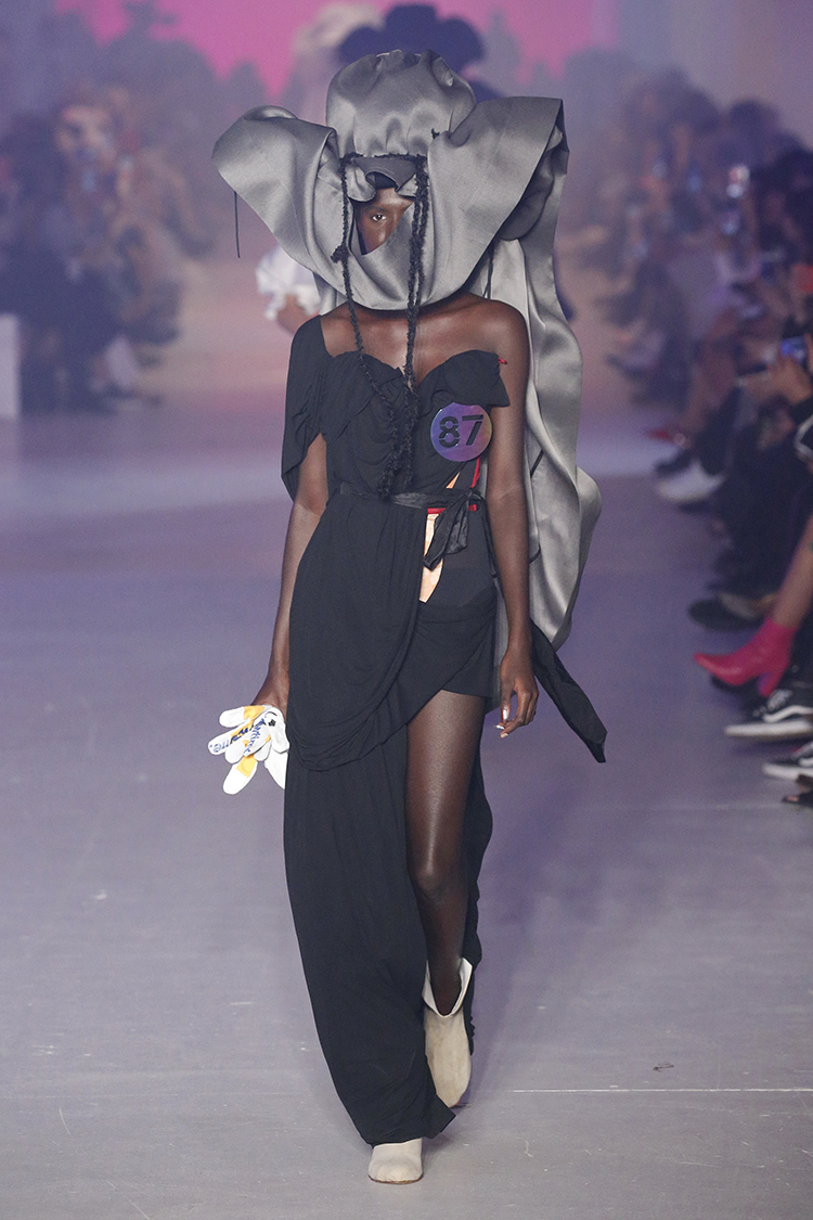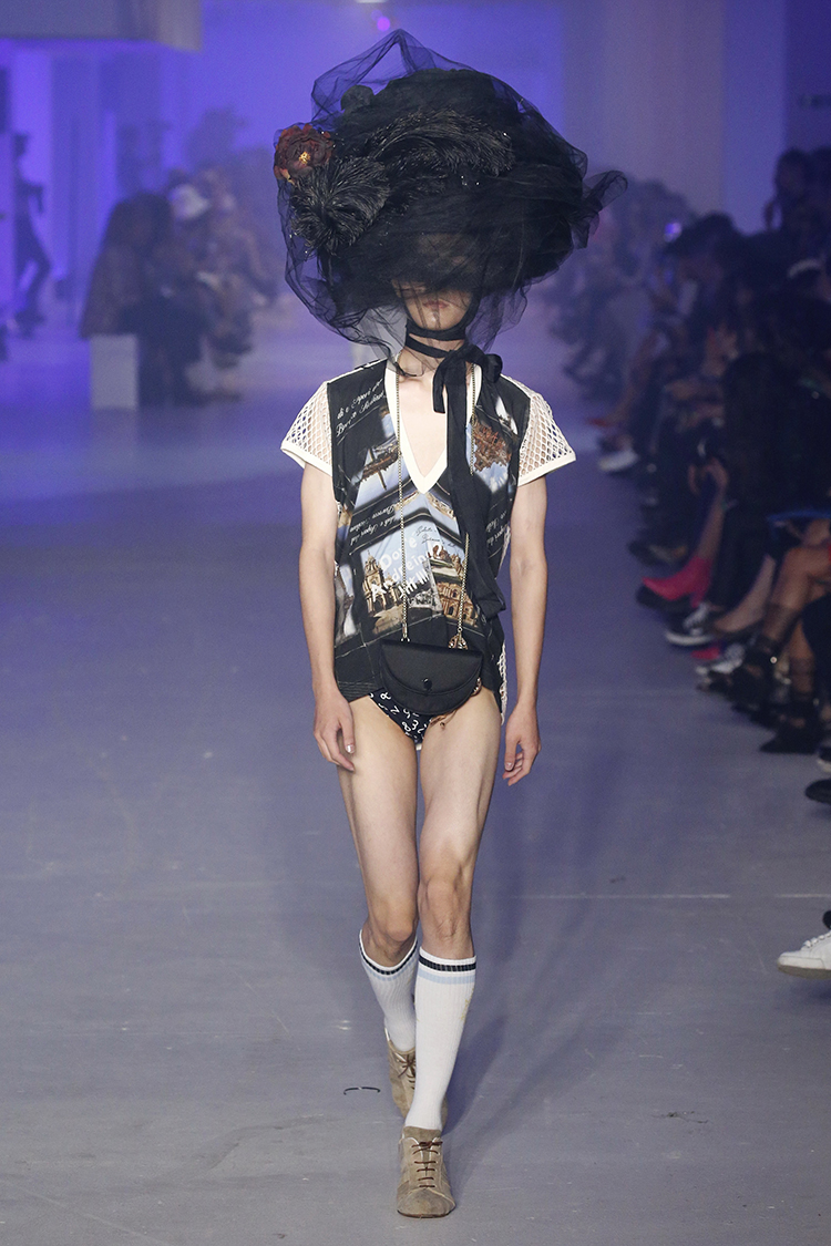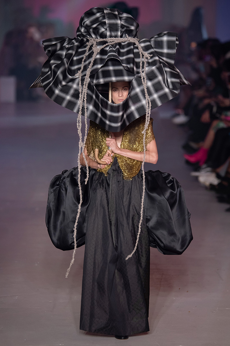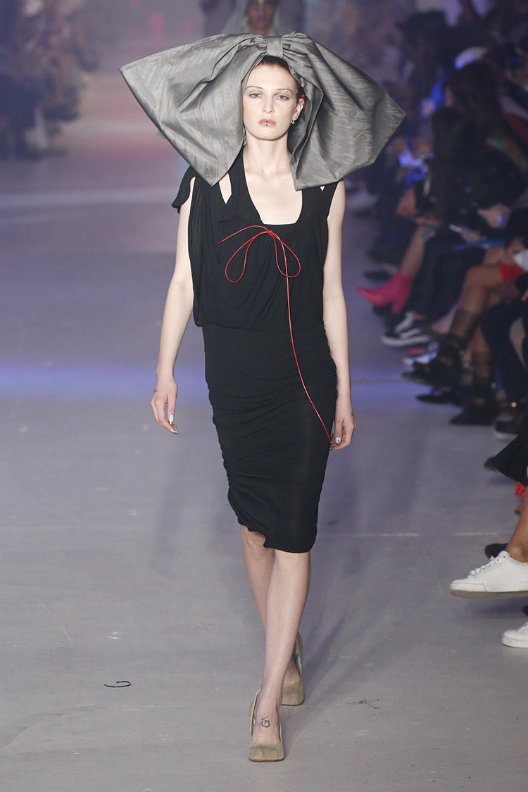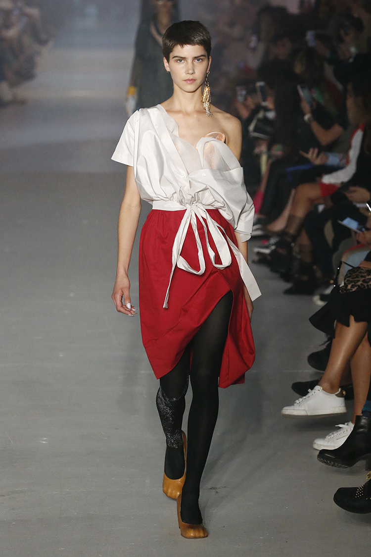 C’est dans un hangar gigantesque de la rue des Poissonniers, à Paris, que Vivienne Westwood a présenté sa collection printemps-été 2020. Un cadre en parfaite adéquation avec le style de la maison. Andreas Kronthaler dévoile ici une collection aussi inspirante qu’inspirée baptisée ‘Rock me Amadeus‘. Il nous invite à la rencontre des pin-ups des années 50 dans un spectacle ambulant où les vêtements se font et se défont, où les formes, aussi fluides que des nuages, affinent des silhouettes souvent fantasques. Les Hommes se mélangent aux animaux et aux machines pour créer un monde à la frontière du réel. Au programme : des chapeaux démesurés, du volume, des drapés, de la superposition …
