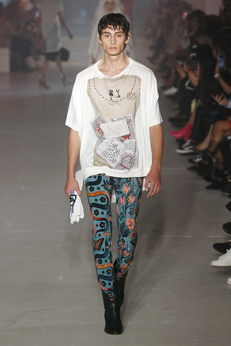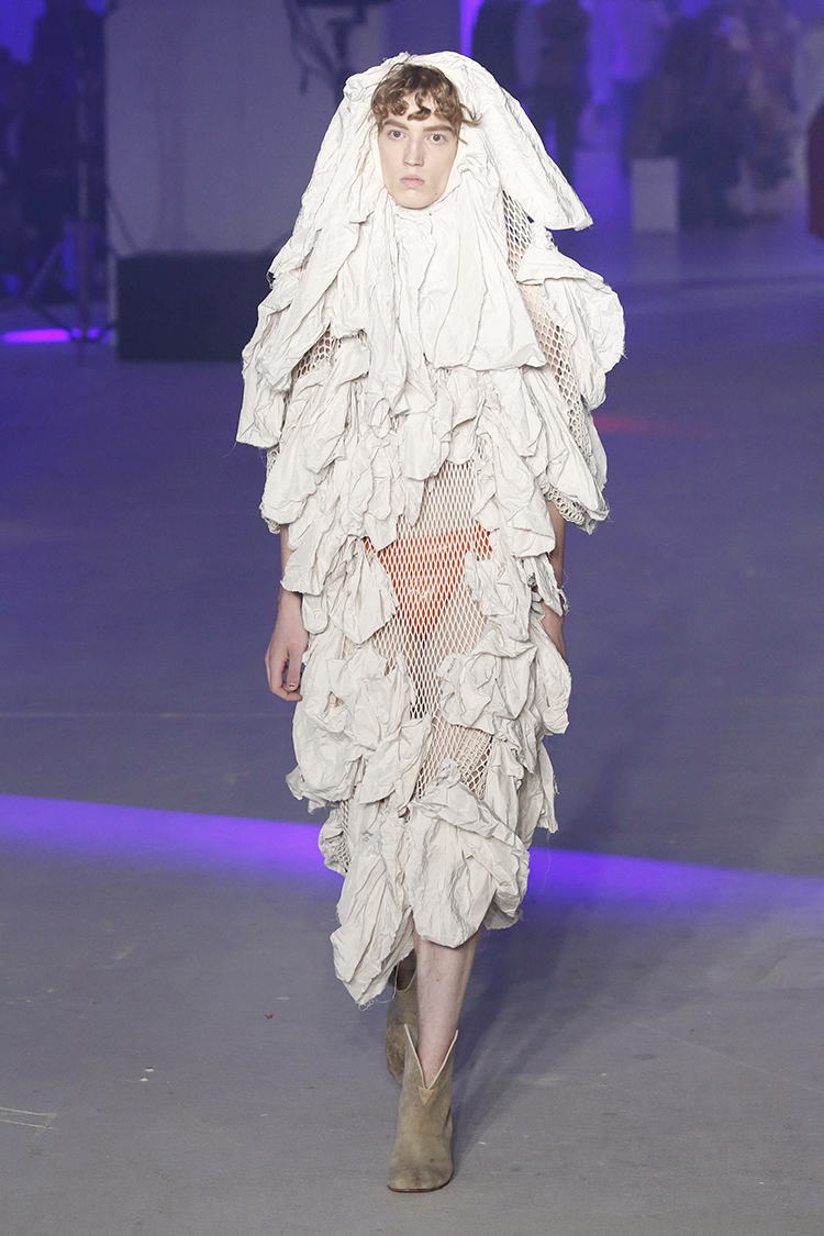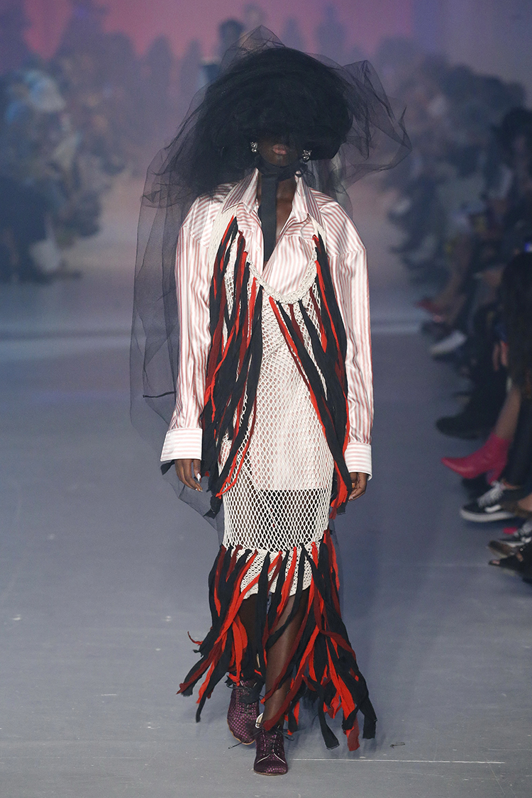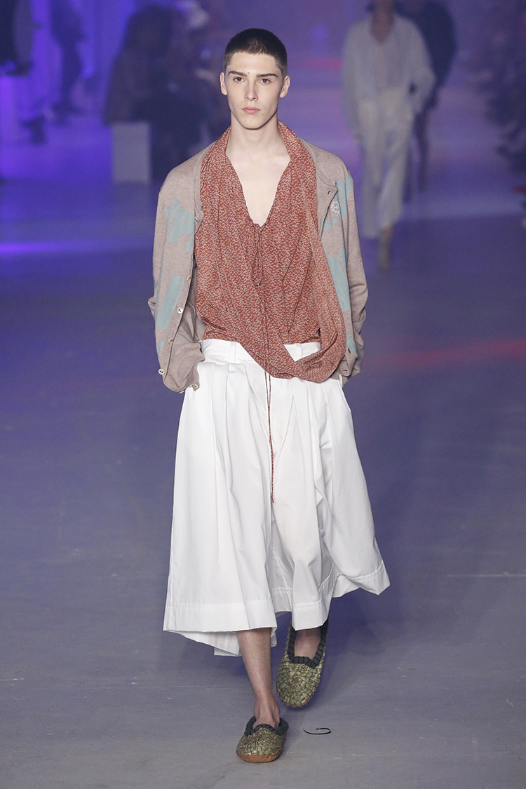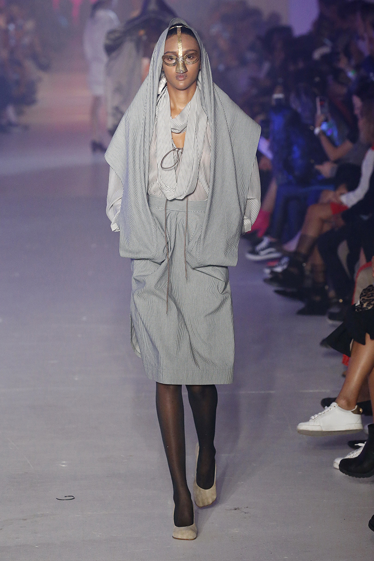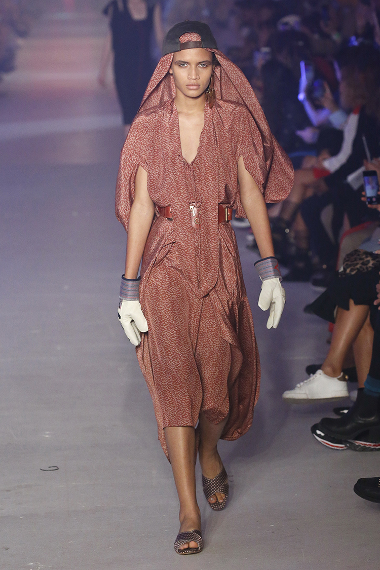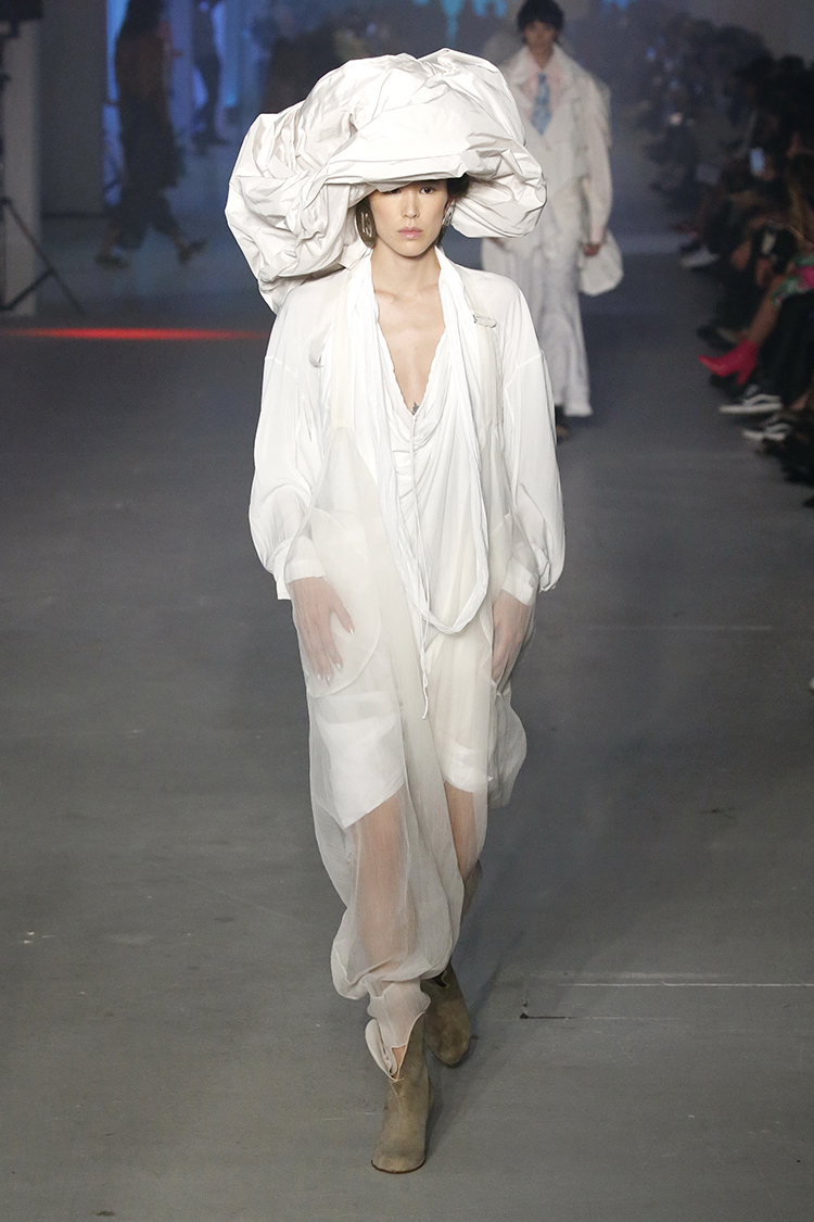 C’est dans un hangar gigantesque de la rue des Poissonniers, à Paris, que Vivienne Westwood a présenté sa collection printemps-été 2020. Un cadre en parfaite adéquation avec le style de la maison. Andreas Kronthaler dévoile ici une collection aussi inspirante qu’inspirée baptisée ‘Rock me Amadeus‘. Il nous invite à la rencontre des pin-ups des années 50 dans un spectacle ambulant où les vêtements se font et se défont, où les formes, aussi fluides que des nuages, affinent des silhouettes souvent fantasques. Les Hommes se mélangent aux animaux et aux machines pour créer un monde à la frontière du réel. Au programme : des chapeaux démesurés, du volume, des drapés, de la superposition …