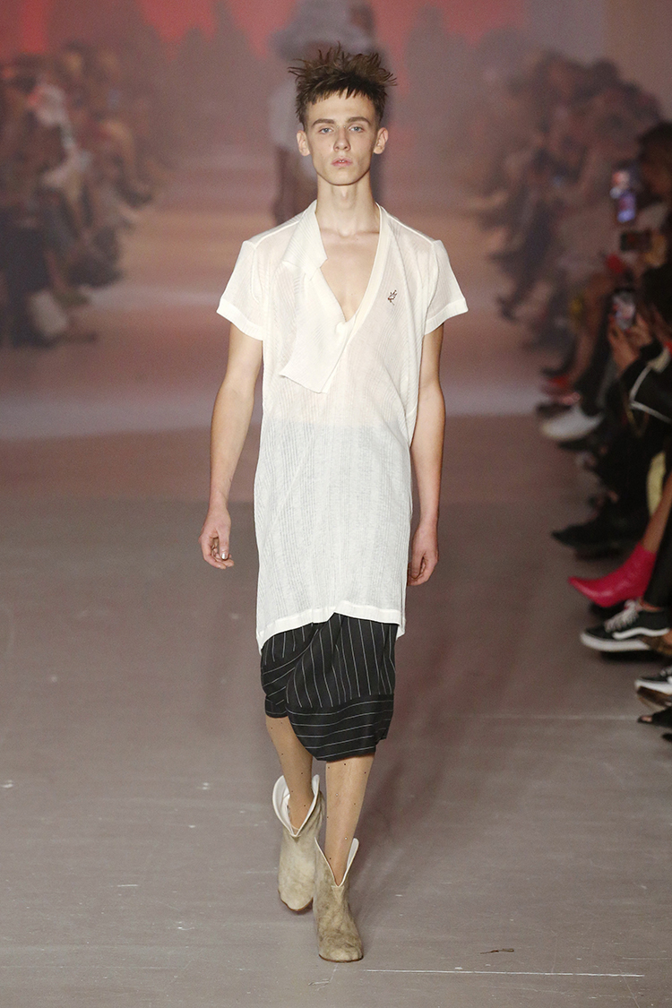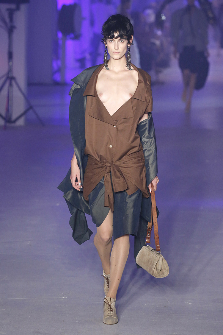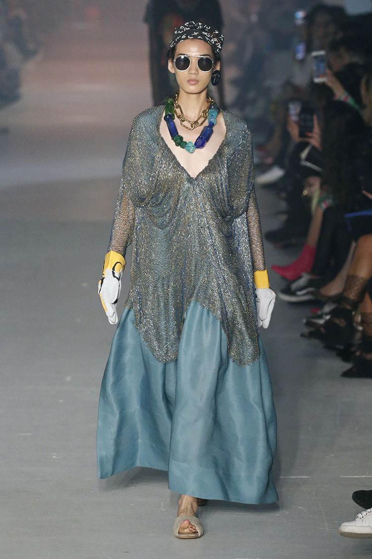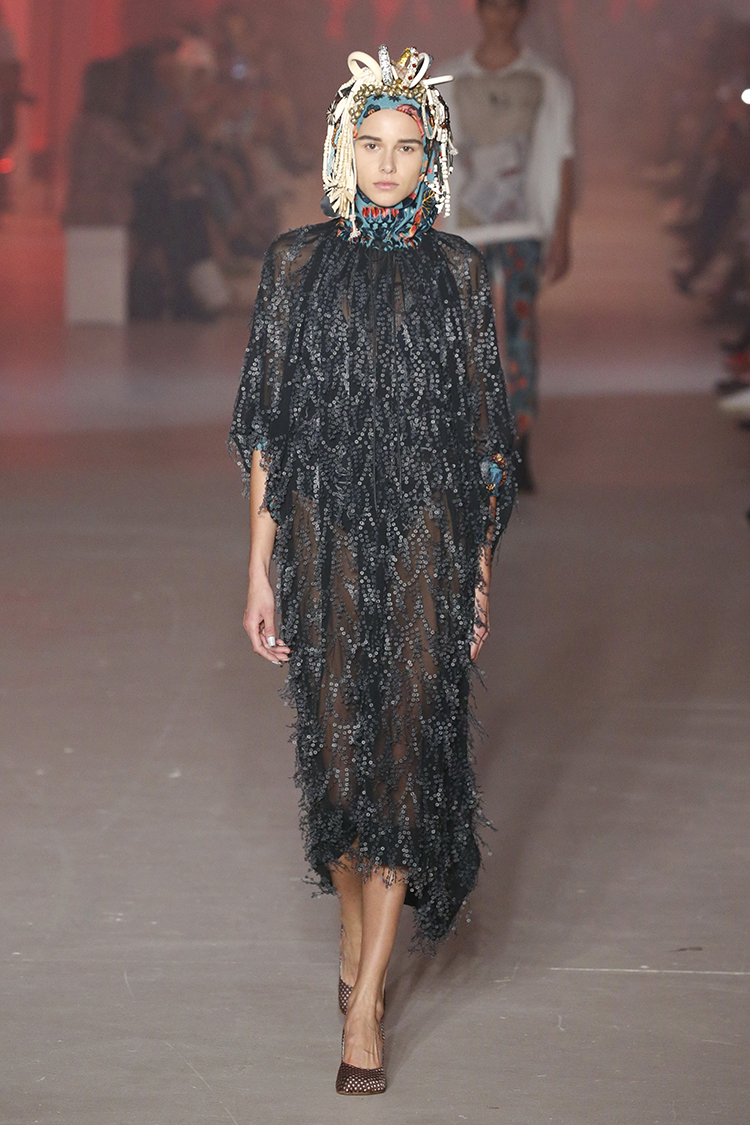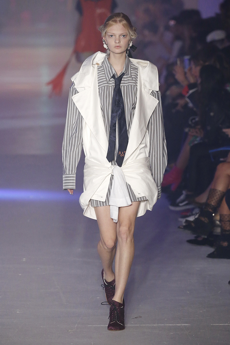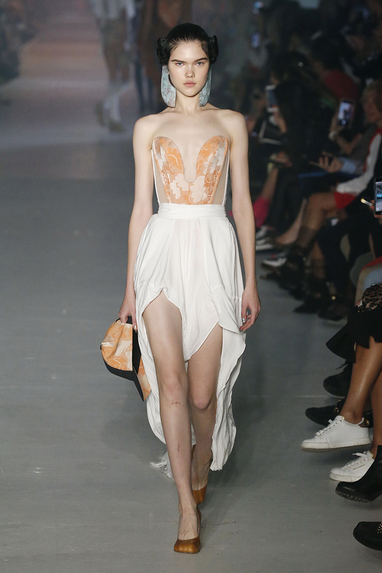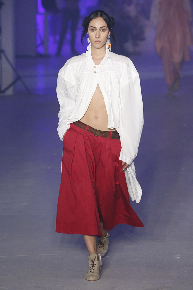 C’est dans un hangar gigantesque de la rue des Poissonniers, à Paris, que Vivienne Westwood a présenté sa collection printemps-été 2020. Un cadre en parfaite adéquation avec le style de la maison. Andreas Kronthaler dévoile ici une collection aussi inspirante qu’inspirée baptisée ‘Rock me Amadeus‘. Il nous invite à la rencontre des pin-ups des années 50 dans un spectacle ambulant où les vêtements se font et se défont, où les formes, aussi fluides que des nuages, affinent des silhouettes souvent fantasques. Les Hommes se mélangent aux animaux et aux machines pour créer un monde à la frontière du réel. Au programme : des chapeaux démesurés, du volume, des drapés, de la superposition …
