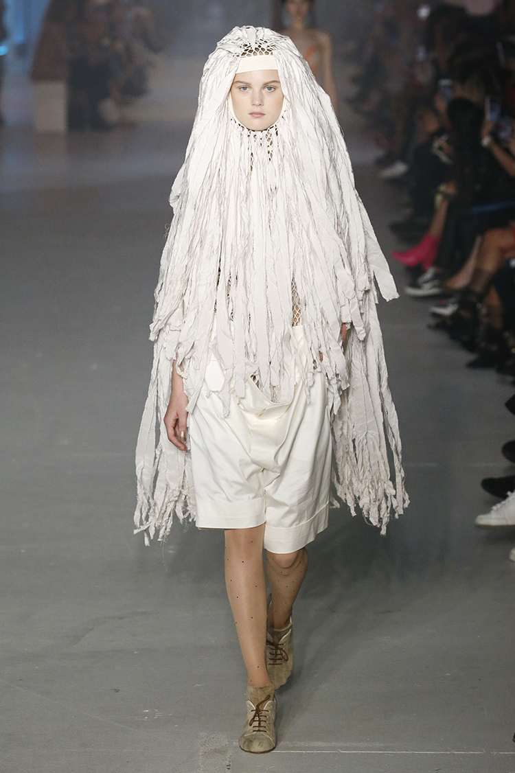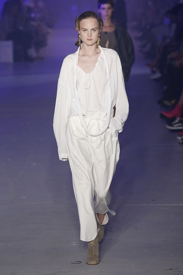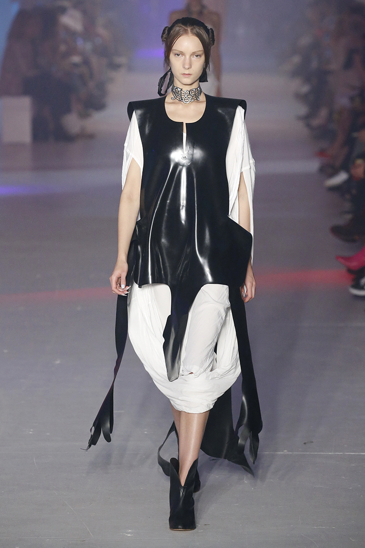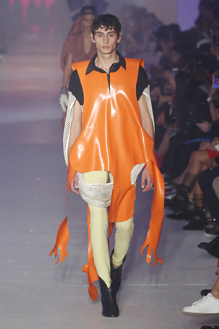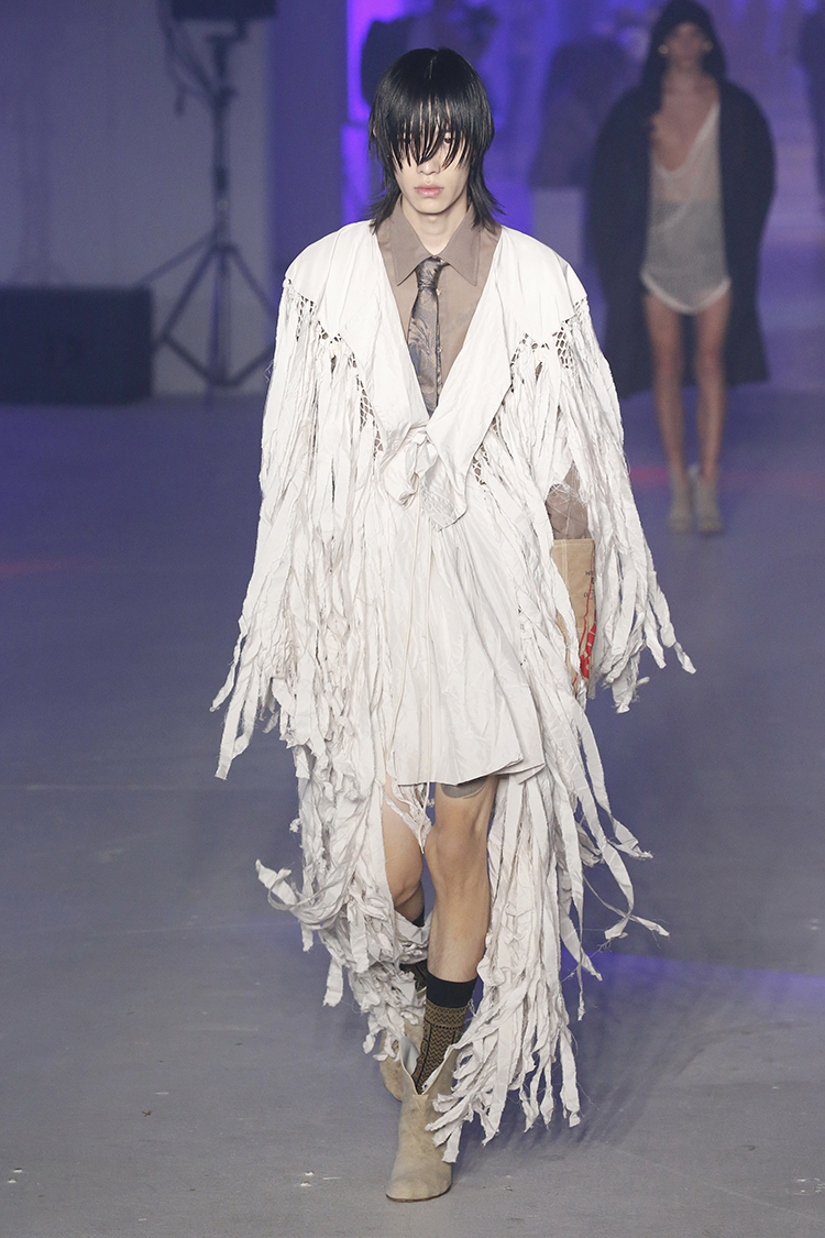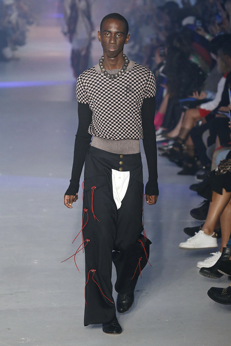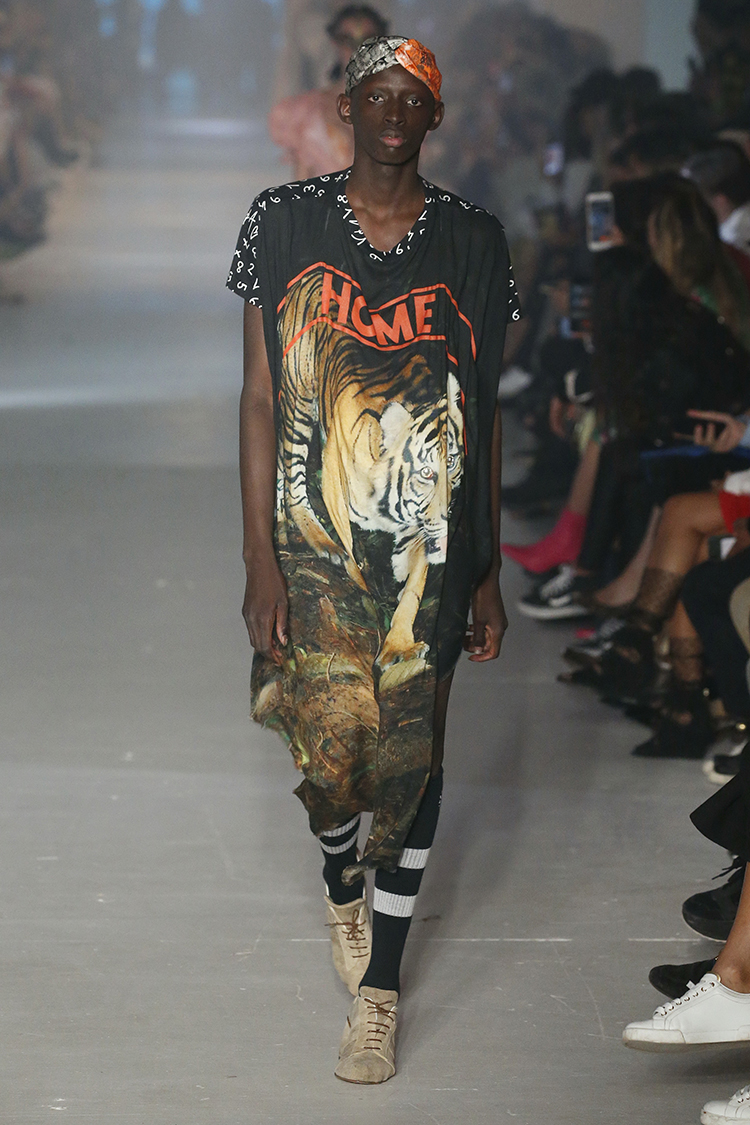 C’est dans un hangar gigantesque de la rue des Poissonniers, à Paris, que Vivienne Westwood a présenté sa collection printemps-été 2020. Un cadre en parfaite adéquation avec le style de la maison. Andreas Kronthaler dévoile ici une collection aussi inspirante qu’inspirée baptisée ‘Rock me Amadeus‘. Il nous invite à la rencontre des pin-ups des années 50 dans un spectacle ambulant où les vêtements se font et se défont, où les formes, aussi fluides que des nuages, affinent des silhouettes souvent fantasques. Les Hommes se mélangent aux animaux et aux machines pour créer un monde à la frontière du réel. Au programme : des chapeaux démesurés, du volume, des drapés, de la superposition …