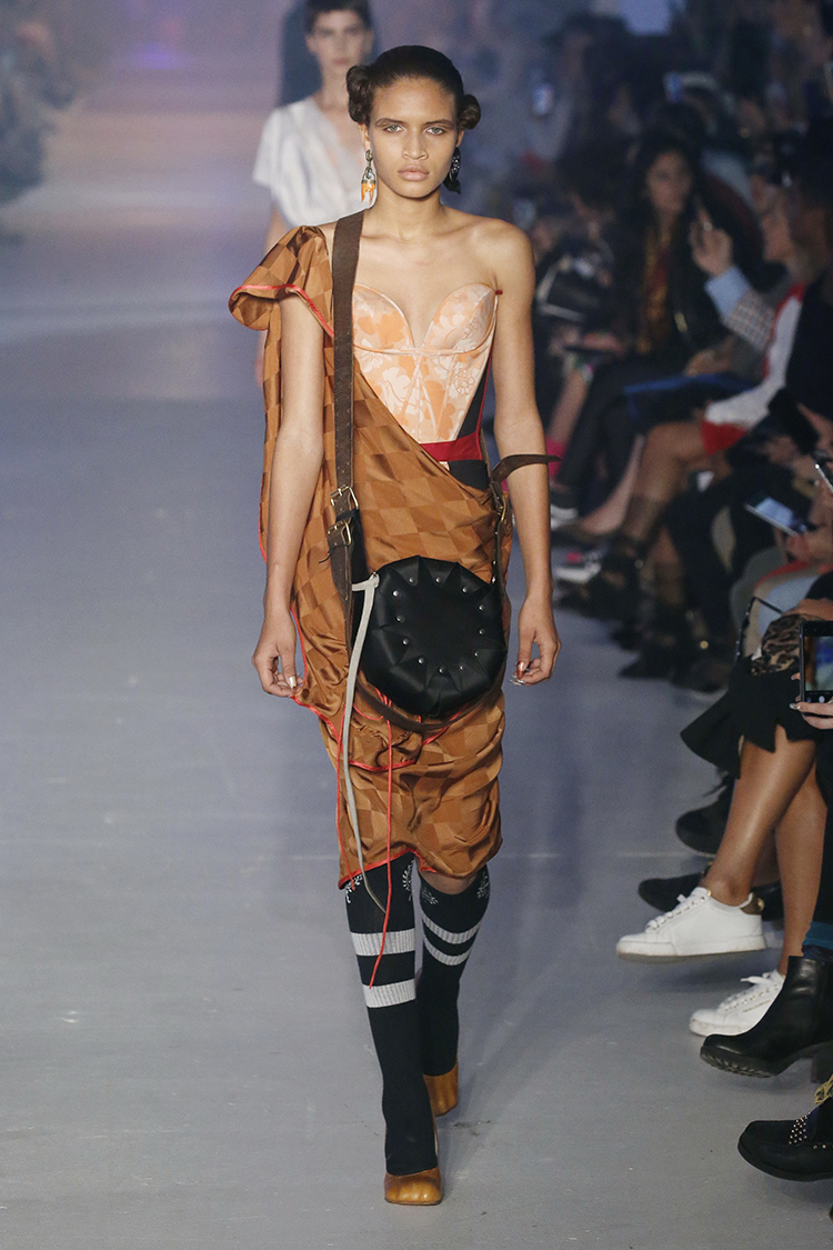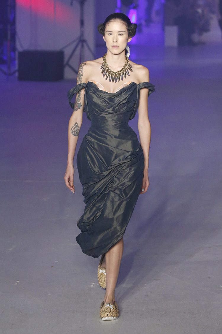 La maison travaille encore cette saison avec ‘Wastemark‘ ou encore ‘Ethical Fashion Initiative’ pour collecter des chutes de tissus qui sont ensuite repensées et réutilisés. L’upcycling n’est plus seulement une tendance, il est au cœur de la création de nombreuses marques. Découvrez dès maintenant tous les looks de la collection printemps-été 2020 d’Andreas Kronthaler pour Vivienne Westwood.