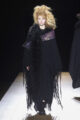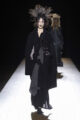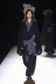 Avant même le début du défilé, une carte placée sur chaque siège invitait les invités à regarder le show avec leurs yeux plutôt qu’à travers leurs téléphones — un geste discret mais révélateur de la vision du designer. Sur le podium, Yamamoto revisite l’héritage du kimono à travers ses drapés emblématiques et ses volumes fluides. Les silhouettes se déploient autour du corps avec une liberté presque chorégraphique, entre respect de la tradition et esprit de rébellion.
