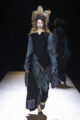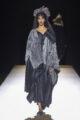 Pour le final, cinq silhouettes apparaissent chaussées de traditionnelles sandales geta, rarement vues hors du Japon. Une conclusion solennelle pour un défilé suspendu entre passé et futur, où Yohji Yamamoto confirme, une fois encore, la maîtrise intemporelle de son art.