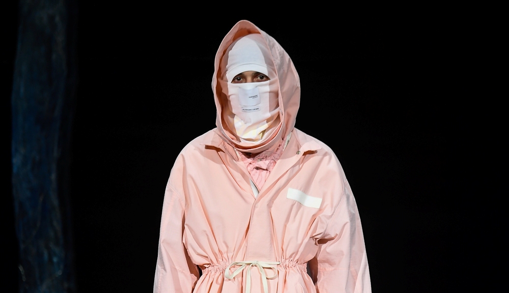 On découvre de nombreuses pièces techniques, sans pour autant oublier quelques classiques, comme un blazer croisé ou encore un denim brut. Les looks s’accompagnent très souvent de couvre-chefs, de la cagoule intégrale au durag cravate, tout semble être étudié pour habiller le corps de la tête aux pieds.